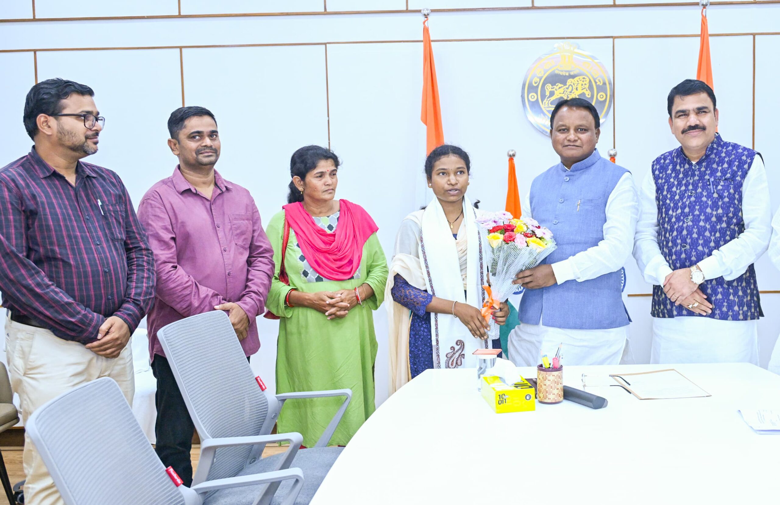 ଭୁବନେଶ୍ୱର: ଆଜି ଲୋକସେବା ଭବନ ଠାରେ ମୁଖ୍ୟମନ୍ତ୍ରୀ ଶ୍ରୀ ମୋହନ ଚରଣ ମାଝୀ ମେଡିକାଲ ପ୍ରବେଶିକା ପରୀକ୍ଷାରେ ଉତ୍ତୀର୍ଣ୍ଣ ହୋଇଥିବା ମାଲକାନଗିରି ଦିଦାୟୀ ସମ୍ପ୍ରଦାୟର କୁମାରୀ ଚମ୍ପା ରାସ୍ପେଦାଙ୍କୁ ସମ୍ୱର୍ଦ୍ଧିତ କରିଛନ୍ତି । ଏଥିସହିତ ମୁଖ୍ୟମନ୍ତ୍ରୀ କୁମାରୀ ଚମ୍ପାଙ୍କ ଉଜ୍ଜ୍ୱଳ ଭବିଷ୍ୟତ କାମନା କରି ତାଙ୍କୁ ଏକ ଲାପ୍ଟପ୍ ଉପହାର ଦେଇଛନ୍ତି । ମୁଖ୍ୟମନ୍ତ୍ରୀ ଚମ୍ପାଙ୍କୁ ଆଶୀର୍ବାଦ କରି ଆଗକୁ ଆହୁରି ଭଲ ପାଠ ପଢ଼ିବାକୁ କହିଥିଲେ । ଭଲ ପାଠପଢ଼ି, ଭଲ ଡାକ୍ତର ହୋଇ, ଲୋକଙ୍କ ସେବା କରିପାରିଲେ ତାହା ହେବ ଜୀବନର ସାର୍ଥକତା ହେବ ବୋଲି ମୁଖ୍ୟମନ୍ତ୍ରୀ ଚମ୍ପାକୁ ଉପଦେଶ ଦେଇଥିଲେ । ମୁଖ୍ୟମନ୍ତ୍ରୀଙ୍କ ଆଶୀର୍ବାଦ ତାଙ୍କର ସାରା ଜୀବନ ପାଇଁ ପ୍ରେରଣା ସୃଷ୍ଟି କରିବ ବୋଲି କୃତଜ୍ଞତା ପ୍ରକାଶ କରି ଚମ୍ପା କହିଥିଲେ ।