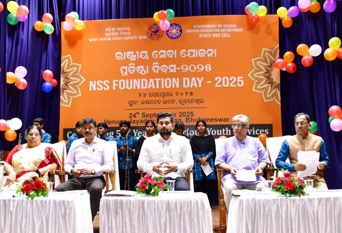 ଭୁବନେଶ୍ୱର:  ଉଚ୍ଚଶିକ୍ଷା ବିଭାଗ ଆନୁକୂଲ୍ୟରେ ଭୁବନେଶ୍ୱର ସ୍ଥିତ ଜୟଦେବ ଭବନ ଠାରେ ଆଜି ୫୬ତମ ଜାତୀୟ ସେବା ଯୋଜନା (ଏନ୍ଏସ୍‌ଏସ୍‌) ପ୍ରତିଷ୍ଠା ଦିବସ ପାଳିତ ହୋଇଯାଇଛି। ଆଜିର କାର୍ଯ୍ୟକ୍ରମରେ ଉଚ୍ଚଶିକ୍ଷା ମନ୍ତ୍ରୀ ଶ୍ରୀ ସୂର୍ଯ୍ୟବଂଶୀ ସୂରଜ ମୁଖ୍ୟ ଅତିଥି ଭାବେ ଯୋଗଦେଇଥିଲେ।