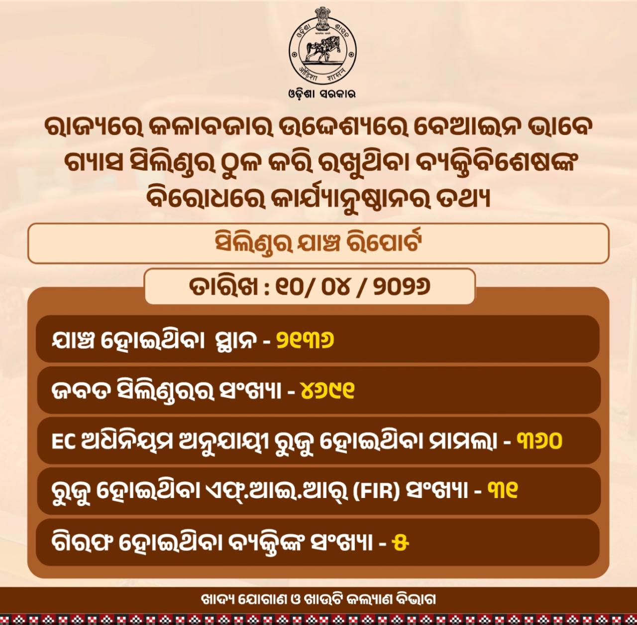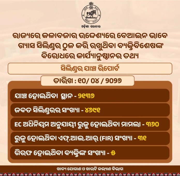 ରାଜ୍ୟରେ ଏଲପିଜି ଗ୍ୟାସ କଳାବଜାରୀ ରୋକିବା ଉଦ୍ଦେଶ୍ୟରେ କାର୍ଯ୍ୟାନୁଷ୍ଠାନ