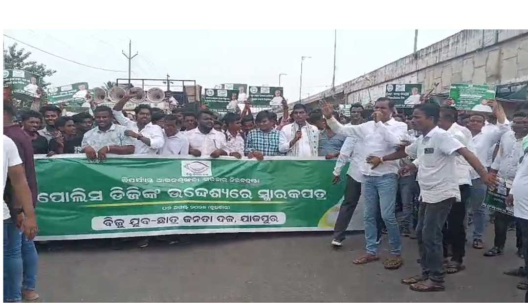 ଯାଜପୁର: ସମଗ୍ର ରାଜ୍ୟ ରେ ନାରୀ ନିର୍ଯ୍ୟାତନା ବୃଦ୍ଧି ପାଉଛି l ରାଜ୍ୟ ରେ ଆଇନ ଶୃଙ୍ଖଳା ବିପର୍ଯ୍ୟସ୍ତ ହୋଇଛି ପଡିଛି l ରାଜ୍ୟ ରେ ଶାସନ ବ୍ୟବସ୍ତା ଭୁଶୁଡି ପଡିଛି ନା ବାଳିକା ଛାତ୍ରୀ ମହିଳା ସୁରକ୍ଷିତ ମଣୁ ନାହାନ୍ତି l ବିଜୁ ଯୁବ ଛାତ୍ର ଜନତା ଦଳର ବିକ୍ଷୋଭ ପ୍ରଦର୍ଶନ ବିଜେପି ସରକାର ର ଅପରlଗତl ବିରୁଦ୍ଧରେ ମହିଳା ମାନଂକୁ ସୁରେକ୍ଷା ଦିଅ ଦାବି ରେ ଯାଜପୁର ଜିଲ୍ଲା ଯୁବ ଓ ଛାତ୍ର ଜନତା ଦଳ ପକ୍ଷରୁ ପାଣିକୋଇଲି ସ୍ଥିତ ଜିଲ୍ଲା ଆରକ୍ଷୀ ଅଧିକ୍ଷକଙ୍କ କାର୍ଯ୍ୟାଳୟ ସମ୍ମୁଖରେ ବିକ୍ଷୋଭ ପ୍ରଦର୍ଶନ ସହ ପୋଲିସ ଡିଜିଙ୍କୁ ଯାଜପୁର ଏସପିଙ୍କ ମାଧ୍ୟମରେ ସ୍ମାରକପତ୍ର ପ୍ରଦାନ।ସମଗ୍ର ଯାଜପୁର ଜିଲ୍ଲା ବିଜେଡି ଯୁବ ଛାତ୍ର ସଙ୍ଘଟନ ପକ୍ଷରୁ ରୁବିଜେଡି ନେତା ଭବ ପ୍ରସାଦ ଦାସ ଙ୍କ ନେତୃତ୍ୱ ରେ ଶହ ଶହ ସଂଖ୍ୟା ରେ ଯୁବକ ଛାତ୍ର ମାନେ ମାନେ ଏକ ପଟୁଆର ବିଭିନ୍ନ ନାରା ବାଜି କରି ଥିଲେ ବିଜେପି ସରକାର ହାୟ ହାୟ ନାରୀ ସୁରେକ୍ଷା ଯୋଗାଇ ବା ରେ ମୋହନ ସରକାର ବିଫଳ ସରକାର ରହିବା ରେ ଅଧିକାର ନାହଁ ତୁରନ୍ତ ଗାଦି ଛାଡ଼ ବୋଲି ନାରା ଦେଇ ଏସପି ଙ୍କ କାର୍ଯ୍ୟାଳୟ ସମ୍ମୁଖରେ ବିକ୍ଷୋଭ ପଦର୍ଶନ କରି ଥିଲେ ଏସପି ଙ୍କୁ ଡିଜି ଙ୍କ ଉଦେଶ୍ୟ ରେ ଦାବି ପତ୍ର ପଦାନ କରି ଥିଲେ l