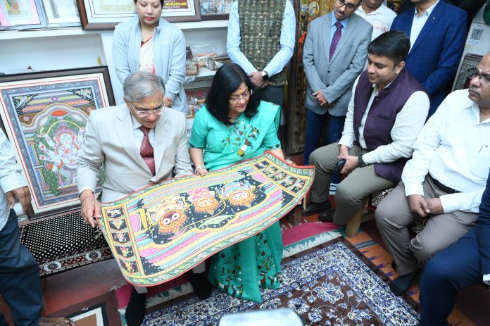 ଭୁବନେଶ୍ୱର, : ଓଡିଶା ଗସ୍ତରେ ଆସିଥିବା ଭାରତର ମୁଖ୍ୟ ନିର୍ବାଚନ କମିଶନର ଶ୍ରୀ ଜ୍ଞାନେଶ କୁମାର ଆଜି କଳାଗ୍ରାମ ରଘୁରାଜପୁର ପରିଦର୍ଶନ କରି ସେଠାକାର କାରିଗରଙ୍କ ଦ୍ୱାରା ପ୍ରସ୍ତୁତ ନିଖୁଣ ପଟ୍ଟଚିତ୍ର, ଟସର ଓ କାଠ ଶିଳ୍ପ ଆଦି କଳାକୃତିର ପ୍ରତ୍ୟକ୍ଷ ଅନୁଭୂତି ନେବା ସହିତ କାରିଗରମାନଙ୍କ ସହ ଆଲୋଚନା କରିଥିଲେ । ପରିଦର୍ଶନ ସମୟରେ ମୁଖ୍ୟ ନିର୍ବାଚନ ଅଧିକାରୀ, ଓଡିଶା ଶ୍ରୀ ଆର ଆସ ଗୋପାଳନଙ୍କ ସମେତ ବରିଷ୍ଠ ଅଧିକାରୀମାନେ ଉପସ୍ଥିତ ଥିଲେ ।