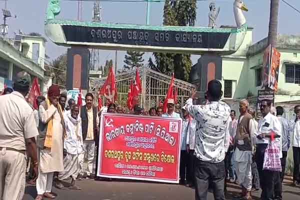 ଯାଜପୁର: ଭାରତୀୟ କମ୍ୟୁନିଷ୍ଟ ପାର୍ଟି ଆହ୍ବାନ କ୍ରମେ ଆଜି ଶତାଧିକ ବ୍ୟକ୍ତି ଆଜି ଦଶରଥପୁର ବ୍ଲକ ଅଧିନସ୍ଥ କାଟିଆ ଛକରୁ ଏକ ଲାଲ ପତାକା ସୁସଜ୍ଜିତ ଶୋଭା ଯାତ୍ରା ଜନସମସ୍ୟା ଦାବି ସମ୍ବଳିତ ସ୍ଲୋଗାନ ଦେଇ ଦଶରଥପୁର ବ୍ଲକ କାର୍ଯ୍ୟାଳୟ ସମ୍ମୁଖ ଫାଟକ ନିକଟରେ ପହଞ୍ଚିଥିଲା। ବର୍ଷିୟାନ କୃଷକ ନେତା ସନାତନ ତ୍ରିପାଠୀ ଙ୍କ ସଭାପତିତ୍ବ ରେ ଏକ ପ୍ରତିବାଦ ସଭା ଅନୁଷ୍ଠିତ ହୋଇଥିଲା। ଆଞ୍ଚଳିକ କମିଟି ର ସମ୍ପାଦକ ଏସ ଶତପଥୀ,ଜିଲ୍ଲା ସହ ସମ୍ପାଦକ ଅଭୟ କୁମାର ପଣ୍ଡା, ବିଜୟ କୁମାର ନାୟକ,ଚୌଧୁରୀ ଜେନା,ଶିକ୍ଷକ ନେତା ନିରଞ୍ଜନ ବିଶ୍ବାଳ,ଦୁର୍ଯ୍ୟୋଧନ ବାରିକ,ସୁରେନ୍ଦ୍ର ମଲ୍ଲିକ,ମଳୟ କୁମାର ପଣ୍ଡା ଉଦବୋଧନ ଦେଇଥିଲେ।ରାଧେଶ୍ୟାମ ରାଉତ,ଲକ୍ଷ୍ମୀକାନ୍ତ ବାରିକ,ପୁରସ୍ତମ ବେହେରା,ବନମାଳୀ ଦାସ,ପ୍ରାଣକୃଷ୍ଣ ଦଳାଇ ,ବଂଶୀଧର ଦାସ,ପୂର୍ଣ୍ଣ ଜେନା,ବିଷ୍ଣୁ ଚରଣ ଦାସ,ରମେଶ ବେହୁରାଙ୍କ ସମେତ ଶତାଧିକ କୃଷକ,କ୍ଷେତ ମଜଦୂର,ମହିଳା,ଯୁବ,ଛାତ୍ର ଶୋଭାଯାତ୍ରା ରେ ଯୋଗଦେଇଥିଲେ। ଶେଷ ରେ ଏକ ପ୍ରତି ନିଧି ଦଳ ବ୍ଲକ ଉନ୍ନୟନ ଅଧିକାରୀ ଶ୍ରୀଯୁକ୍ତ ଆକାଶ ପଟ୍ଟନାୟକ ଙ୍କୁ ରାଜ୍ୟପାଳ ଙ୍କ ଉଦ୍ଦେଶ୍ୟରେ ଏକ ୧୨ଦଫା ଦାବି ସମ୍ବଳିତ ଦାବିପତ୍ର ପ୍ରଦାନ କରାଯାଇଥିଲା। ଦାବି ଗୁଡ଼ିକ ନିର୍ବାଚନ ପୂର୍ବରୁ ବିଜେପି ସରକାର ଲୋକମାନଙ୍କୁ ଦେଇଥିବା ପ୍ରତିଶୃତି ପାଳନ କରନ୍ତୁ। ସମସ୍ତ ବାର୍ଦ୍ଧକ୍ୟ,ବିଧବା,ଭିନ୍ନ କ୍ଷମ ଙ୍କୁ ୩୦୦୦ଟଙ୍କା ଭତ୍ତା ତୁରନ୍ତ ପ୍ରଦାନ ,୩୧୦୦ଟଙ୍କା କୁଣ୍ଟାଲ ପ୍ରତି ମୂଲ୍ୟରେ ସମସ୍ତ ଚାଷୀ ଧାନ କ୍ରୟ କରିବା ସହ କଟିନ, ଛଟିନ ବନ୍ଦ କରିବା,ପ୍ରଦୂଷଣ ନାମ ରେ ନିରୀହ ଗାଡ଼ି ଚାଳକ ଙ୍କ ଠାରୁ ଜୋରିମାନା ନାମ ରେ ଶୋଷଣ ବନ୍ଦ କରିବା,ପ୍ରକୃତ ପ୍ରଦୂଷଣ ସୃଷ୍ଟି କରୁଥିବା କାରଖାନ ପୁଞ୍ଜିପତି ମାନଙ୍କ ଉପରେ ଦୃଢ଼ ଆଇନ ଲାଗୁ କରିବା,ଟାଟା କମ୍ପାନୀ ର ସ୍ମାର୍ଟ ମିଟର ମାଧ୍ୟମ ରେ ବିଜୁଳି ଉପଭୋକ୍ତା ମାନଙ୍କୁ ଶୋଷଣ ବନ୍ଦକରିବା ସହ ୩୦୦ୟୁନିଟ ପର୍ଯ୍ୟନ୍ତ ବିଦ୍ୟୁତ ବିଲ ଛାଡ଼ କରିବା ,ଶିକ୍ଷା ଓ ସ୍ବାସ୍ଥ୍ୟ ସେବା କୁ ବ୍ୟବସାୟ କରଣ ବନ୍ଦ କରିବା,ମହିଳା,ଦଳିତ,ଆଦିବାସୀ ଓ ସଂଖ୍ୟା ଲଘୁ ଙ୍କ ଉପରେ ହେଉଥିବା ଅତ୍ୟାଚାର କୁ ବନ୍ଦା କରିବା,ଗୋରକ୍ଷକ ଓ ହିନ୍ଦୁ ସମ୍ମିଳନୀ ନାମରେ ସାମ୍ପ୍ରଦାୟିକ ବିଦ୍ୟୋଷ କୁ ବନ୍ଦ କରିବା ଦାବି ପତ୍ରରେ ଉଲ୍ଲେଖ ଥିଲା।