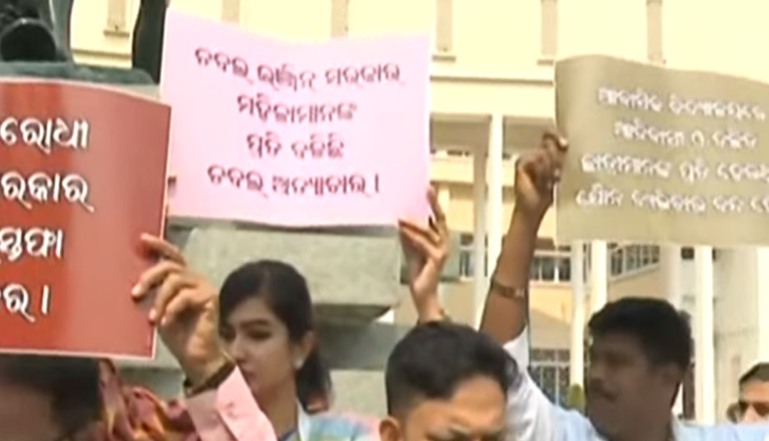 ଗାନ୍ଧୀ ମୂର୍ତ୍ତି ତଳେ କଂଗ୍ରେସ ବିଧାୟକଙ୍କ ଧାରଣା