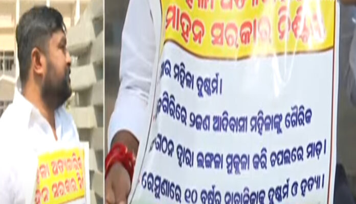 ଭୁବନେଶ୍ୱର : ନାରୀ ସୁରକ୍ଷା ଓ ବିପଯ୍ୟସ୍ତ ଆଇନଶୃଙ୍ଖଳା ପରିସ୍ଥିତି ପ୍ରତିବାଦରେ ବିଧାନସଭା ପରିସରରେ  ଗାନ୍ଧୀ ମୂର୍ତ୍ତି ତଳେ ଧାରଣା ଦେଲେ କଂଗ୍ରେସ ସଦସ୍ୟ । ବଜେଟ ଅଧିବେଶନ ଆରମ୍ଭ ପୂର୍ୱରୁ ବିଧାନ ସଭା  ପରିସରରେ ବିରୋଧ ଦେଖାଦେଇଛି ।