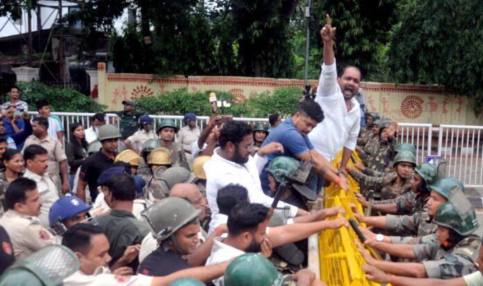 ଭୁବନେଶ୍ୱର: ଆଜି ରାଜ୍ୟ ଯୁବକଂଗ୍ରେସସଭାପତିଶ୍ରୀରଣଜିତ ପାତ୍ରଙ୍କନେତୃତ୍ୱରେ ଯୁବକଂଗ୍ରେସକର୍ମୀମାନେ ଏଜିଛକଠାରୁ ଏକ ବିକ୍ଷୋଭଶୋଭାଯାତ୍ରାରେ ଯାଇମୁଖ୍ୟମନ୍ତ୍ରୀଙ୍କବାସଭବନ ସମ୍ମୁଖରେ ବିକ୍ଷୋଭ ପ୍ରଦର୍ଶନ କରିଥିଲେ। ପୁରୀ ରଥଯାତ୍ରା ପରିଚାଳନରେମହାବିଫଳତା, ପରବର୍ତ୍ତୀ ପର୍ଯ୍ୟାୟରେ ଦଳାଚକଟାଏବଂମୃତାହତ ପାଇଁ ଦାୟୀମୁଖ୍ୟମନ୍ତ୍ରୀ ଓ ଆଇନ ମନ୍ତ୍ରୀଙ୍କଇସ୍ତଫା ଦାବିକରାଯାଇଥିଲା।ସେଠାରେ ଅଧଘଣ୍ଟା ପର୍ଯ୍ୟନ୍ତ ଧସ୍ତାଧସ୍ତିହେବାପରେ ଯୁବକଂଗ୍ରେସରନେତୃବର୍ଗ ଓ କର୍ମୀମାନଙ୍କୁପୋଲିସଭ୍ୟାନ ଯୋଗେଉଠାଇନେଇଥିଲା।