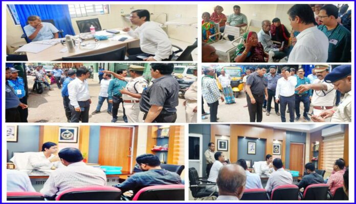 ଅଡିଓଲୋଜି ବିଭାଗ ରେ କିଛି ଯନ୍ତ୍ରାଂଶ ର ଅଭାବ ଏବଂ ଏ.ସି ର ଅଭାବ ବିଷୟ ରେ ସେଠାରେ ଉପସ୍ଥିତ ଡାକ୍ତର ଜିଲ୍ଲାପାଳଙ୍କ ଦୃଷ୍ଟି ଆକର୍ଷଣ କରିଥିଲେ ଏବଂ ଏହାର କିପରି ସମାଧାନ ହୋଇପାରିବ ସେଥିପାଇଁ ଜିଲ୍ଲାପାଳ ମେଡିକାଲ ପରିଚାଳକଙ୍କୁ ନିର୍ଦେଶ ଦେଇଥିଲେ। ତତ୍ପରେ ଜିଲ୍ଲାପାଳ ମେଡିକାଲ ରେ ଉପସ୍ଥିତ ଥିବା କିଛି ରୋଗୀ ଏବଂ ସେମାନଙ୍କ ସାଙ୍ଗରେ ଆସିଥିବା ଆଟେଣ୍ଡାଣ୍ଟ ମାନଙ୍କ ର ଭଲ ମନ୍ଦ ଅବସ୍ଥା ପଚାରି ବୁଝିଥିଲେ ଏବଂ ମାଗଣା ଔଷଧ , ଖାଦ୍ୟ ଆଦି ମିଳୁଛି କି ନାହିଁ ପଚାରି ବୁଝିଥିଲେ ।ଜିଲ୍ଲାପାଳ ମେଡିକାଲ ର ମୁଖ୍ୟ ପ୍ରବେଶ ଦ୍ୱାର କୁ ଯାଇଥିଲେ ଏବଂ ମୁଖ୍ୟ ପ୍ରବେଶ ଫାଟକ ରେ ଅତିମାତ୍ରାରେ ଗାଡି, ଅଟୋ , ଆଦି ରହୁଥିବାରୁ ମେଡିକାଲର ପ୍ରବେଶ ପଥ ଟି ସଂକୀର୍ଣ୍ଣ ହୋଇଯାଉଥିବାରୁ ସେଠୁ ସମସ୍ତ ପରିବହନ ଯାନକୁ ଉଠେଇବା ପାଈଁ ପୋଲିସ କୁ ନିର୍ଦେଶ ଦେଇଥିଲେ।