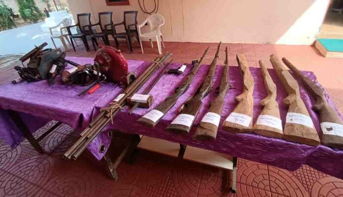 କନ୍ଧମାଳ: ଗୋଚ୍ଛାପଡା ଥାନା କଟ୍ରିଙ୍ଗିଆ ପଞ୍ଚାୟତର ପାଙ୍ଗାପାଜୁ ଗ୍ରାମରେ ପୁଲିସ ଏକ ଦେଶୀ ବନ୍ଧୁକ କାରଖାନା ଠାବ କରିଛି। ଘଟଣା ସ୍ଥଳରୁ ୩ଟି ଦେଶୀ ବନ୍ଧୁକ ଏବଂ ଗୋଟିଏ ପିସ୍ତଲ ସହିତ ନିର୍ମାଣ ପାଇଁ ବ୍ୟବହୃତ ସରଞ୍ଜାମ ମଧ୍ୟ ଜବତ କରାଯାଇଛି। ଏହି ମାମଲାରେ କଟ୍ରିଙ୍ଗିଆ ପଞ୍ଚାୟତ ପାଙ୍ଗାପାଜୁ ଗ୍ରାମର ବାଞ୍ଛାନିଧି ବିନ୍ଧାଣୀଙ୍କୁ ପୁଲିସ ଗିରଫ କରିଛି। ସୂଚନା ଅନୁଯାୟୀ, ବୁଧବାର ପୁଲିସର ପାଟ୍ରୋଲିଂ ଚାଲିଥିବା ବେଳେ ଏହି ଅଞ୍ଚଳରେ ଏକ ଦେଶୀ ବନ୍ଧୁକ ତିଆରି କାରଖାନା ଥିବା ନେଇ ପୁଲିସକୁ ବିଶ୍ୱସ୍ତ ସୂତ୍ରରୁ ଖବର ମିଳିଥିଲା। ସୂଚନା ଆଧାରରେ ଏସ୍ଆଇ ଅନନ୍ତ କୁମାର ପ୍ରଧାନଙ୍କ ନେତୃତ୍ୱରେ ବାଞ୍ଛାନିଧିଙ୍କ ଘରେ ଚଢଉ କରାଯାଇଥିଲା। ଘର ଭିତରେ ଦେଶୀ ବନ୍ଧୁକ ତିଆରି ଚାଲିଥିବା ପୁଲିସ ଦେଖିବାକୁ ପାଇଥିଲା। ଘଟଣା ସ୍ଥଳରୁ ବନ୍ଧୁକ ଓ ଅନ୍ୟାନ୍ୟ ସାମଗ୍ରୀ ଜବତ କରାଯିବା ସହ ବାଞ୍ଛାନିଧିଙ୍କୁ ଗିରଫ କରାଯାଇଛି। ସେ ଅନେକ ଦିନ ଧରି ଏଭଳି ବନ୍ଧୁକ ତିଆରି କରି ନିକଟସ୍ଥ ଅଞ୍ଚଳରେ ବିକ୍ରି କରୁଥିବା ପୁଲିସ ଜାଣିବାକୁ ପାଇଛି। ଏହି ବନ୍ଧୁକ ସାଧାରଣତଃ ଶୀକାର ପାଇଁ ବ୍ୟବହାର କରାଯାଉଥିବା କହିଛି ପୁଲିସ। ଅପରପକ୍ଷେ, ବାଞ୍ଛାନିଧିଙ୍କ ନାମରେ ପୂର୍ବରୁ ମଧ୍ୟ ଗୋଚ୍ଛାପଡା ଥାନାରେ ଏଭଳି ଏକ ମାମଲା ରହିଥିବା ଆଜି ଏକ ସାମ୍ବାଦିକ ସମ୍ମିଳନୀରେ ପ୍ରକାଶ କରିଛନ୍ତି କନ୍ଧମାଳ ଏସ୍ପି ହରିଶ ବି ସି। ଏ ନେଇ କେସ୍ ନଂ ୨୪୧/୨୫ରେ ଏକ ମାମଲା ରୁଜ୍ଜୁ କରାଯାଇ ଅଧିକ ତଦନ୍ତ ଚାଲିଥିବା ସଦର ଏସଡିପିଓ ଶୁଭ୍ରଜିତ ବିଶ୍ୱାଳ ସୂଚନା ଦେଇଛନ୍ତି।