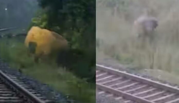 A train in Jharkhand waited for two hours as an elephant delivered her calf. The 📹 shows how the two later walked on happily.