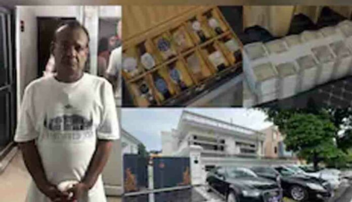 ଚଢ଼ଉ ସମୟରେ ହର୍ଷବର୍ଷନ୍ଙ୍କ ଏହି ବିଳାସମୟ ଭଡାଘରୁ ଏସ୍ଟିଏଫ୍ ଅଧିକାରୀମାନେ କୂଟନୈତିକ ନମ୍ବର ପ୍ଲେଟ୍ ଥିବା କାର, ୧୨ଟି ଛୋଟ ଦେଶର ‘କୂଟନୈତିକ ପାସପୋର୍ଟ’, ବୈଦେଶିକ ମନ୍ତ୍ରଣାଳୟର ଷ୍ଟାମ୍ପ ଥିବା ଡକ୍ୟୁମେଣ୍ଟ, ୩୪ଟି ଦେଶର ସିଲ୍, ୪୪ ଲକ୍ଷ ଟଙ୍କା ନଗଦ, ବିଦେଶୀ ମୁଦ୍ରା, ୧୮ଟି କୂଟନୈତିକ ନମ୍ବର ପ୍ଲେଟ୍ ଏବଂ ବିଳାସପୂର୍ଣ୍ଣ ଘଣ୍ଟା ସଂଗ୍ରହ ଉଦ୍ଧାର କରିଛନ୍ତି । ଜୈନଙ୍କ କାର୍ଯ୍ୟାଳୟରେ ପ୍ରଧାନମନ୍ତ୍ରୀ ଏବଂ ରାଷ୍ଟ୍ରପତିଙ୍କ ସହିତ ଦେଖାଯାଉଥିବା ଫଟୋ ମଧ୍ୟ ଥିବା ଦେଖିବାକୁ ମିଳିଛି । ହର୍ଷବର୍ଦ୍ଧନ ନିଜକୁ ସଚ୍ଚୋଟ ଦେଖାଇବା ପାଇଁ ଏହି ନକଲି ‘ଦୂତାବାସ’ ବାହାରେ ଭଣ୍ଡାର (ସମ୍ପ୍ରଦାୟ ଭୋଜ) ଭଳି ଦାନ କାର୍ଯ୍ୟକ୍ରମ ଆୟୋଜନ କରୁଥିଲେ । ତଦନ୍ତକାରୀମାନେ ଜୈନଙ୍କ କିଛି ଫଟୋ ମଧ୍ୟ ପାଇଥିଲେ ଯାହାକି ସେ ବିବାଦୀୟ “ଗଡଫାଦର’ ତଥା ଆତ୍ମଘୋଷିତ ଧର୍ମଗୁରୁ ଚନ୍ଦ୍ରସ୍ୱାମୀ ଏବଂ ସାଉଦି ଅସ୍ତ୍ରଶସ୍ତ୍ର ବ୍ୟବସାୟୀ ଅଦନାନ ଖଶୋଗୀଙ୍କ ନିକଟତର ଥିବାର ସ୍ପଷ୍ଟ ପ୍ରମାଣ ସାବ୍ୟସ୍ତ ହୋଇଛି ।