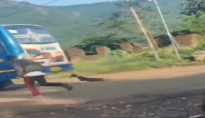 ବସ ପଛରେ କୁକୁରକୁ ଘୋଷାଡି ଘୋଷାଡି ନେଲେ