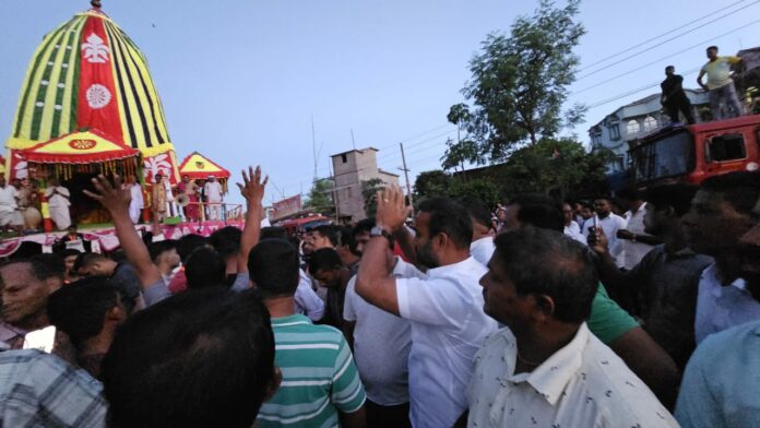 ଯାଜପୁର : ଯାଜପୁରରେ ବାସୀ ରଥଯାତ୍ରାର ପରମ୍ପରା ରହିଛି । ଯାଜପୁର ଓ ସୁକିନ୍ଦାରେ ଜଗନ୍ନାଥ ମନ୍ଦୀର ପକ୍ଷରୁ ପ୍ରତିବର୍ଷ ରଥଯାତ୍ରା ପରଦିନ ଟଣାହେବାର ପରମ୍ପରା ରହିଛି । ଏଥିପାଇଁ ବଡ ଧୁମଧାମରେ ରଥଟଣା ସଂପନ୍ନ ହୋଇଛି । ୩ ରଥରେ ଚତୁର୍ଦ୍ଧା ମୂର୍ତି ବିରାଜମାନ ହେବା ପରେ ମାଉସୀ ମା’ ମନ୍ଦିର ଅଭିମୁଖେ ଭକ୍ତମାନେ ରଥକୁ ଟାଣି ଟାଣି ନେଇଥିଲେ । ଶହ ଶହ ଭକ୍ତଙ୍କ ଘଂଟ ହୁଳୁହୁଳି ଧ୍ୱନୀରେ ପ୍ରକମ୍ପିତ ହୋଇଥିଲା ସମଗ୍ର ଅଂଚଳ । ଗତ ତିନି ବର୍ଷ ହେଲା ମା ସୁଭଦ୍ରାଙ୍କ ରଥକୁ କେବଳ ମହିଳା ମାନେ ବେଶ ଉତ୍ସାହିତ ସହ ଓଡିଶୀ ଏବଂ ଘଂଟ ର ତାଳେ ତାଳେ ଟାଣିଥିଲେ । ଚଳିତବର୍ଷ ରଥଯାତ୍ରାକୁ ନେଇ ବେଶ ଉତ୍ସାହିତ ଅଛନ୍ତି ଶ୍ରଦ୍ଧାଳୁ । ଏହାକୁ ନେଇ ସ୍ଥାନୀୟ ଅଞ୍ଚଳରର ଆଧ୍ୟାତ୍ମିକ ପରିବେଶ ସୃଷ୍ଟି ହୋଇଥିଲା । ଟ୍ରଷ୍ଟବୋର୍ଡ଼ର ଅଧ୍ୟକ୍ଷ ତଥା ଯାଜପୁର ତହସିଲଦାରଙ୍କ ସମେତ ଯାଜପୁର ପୌରପାଳିକାର ଅଧକ୍ଷା ରଞ୍ଜୁଲତା ହୋତା, ପୌରଉପାଧକ୍ଷ ସନ୍ତୋଷ କୁମାର ମଲିକଙ୍କ ସମେତ କାଉନସିଲର ପ୍ରମୁଖ ଉପସ୍ଥିତ ରହିଥିଲେ । ସଦାବ୍ରତ ମଠ ମହନ୍ତ ପ୍ରଶାନ୍ତ କୁମାର ଦାଶଙ୍କ ଉପସ୍ଥିତିରେ ମନ୍ଦିର ପୂଜକମାନେ ରଥରୁ ଶ୍ରୀ ଜୀଉଙ୍କୁ ପହଣ୍ଡି ବିଜେ କରି ମାଉସୀ ମା’ ମନ୍ଦିରକୁ ଆଣିଥିଲେ । ଶାନ୍ତି ଶ୍ରୁଙ୍ଖଳା ସହ ରଥ ଯାତ୍ରା ଅନୁଷ୍ଠିତ କରିବାକୁ ବ୍ୟାପକ ପୋଲିସ ସହ ସ୍ଵାସ୍ଥ୍ୟ ବିଭାଗ ଓ ଅଗ୍ନିଶମ ବାହିନୀ ନିଯୋଜିତ ହୋଇଥିଲେ। ଅନ୍ୟ ପଟରେ ସୁକିନ୍ଦା ଗଡ ରେ ଶ୍ରୀ ଜୀଉ ଙ୍କ ରଥ ଯାତ୍ରା ଗୁଣ୍ଡିଚା ପର ଦିନ ମହା ଆଡମ୍ବର ରେ ରଥ ଯାତ୍ରା ଅନୁଷ୍ଠିତ ହୋଇ ଥିଲା l ସୁକିନ୍ଦା ଗଡ ର ରାଜ ପରମ୍ପରା ଅନୁଯାଇ ରଥ ରେ ଚେରା ପହଁରା କରି ଥିଲେ l ପୁର୍ବ ତନ ମନ୍ତ୍ରୀ ଇ ପ୍ରୀତି ରଂଜନ ଘଡେଇ ଯୋଗ ଦେଇ ମହା ପ୍ରଭୁ ଙ୍କୁ ଦର୍ଶନ କରି ଥିଲେ l ଚାଳିତ ବର୍ଷ ଶ୍ରୀ ଜିଉ ଙ୍କ ନବ କଳେବର ହୋଇ ଥିଲା ନୁଆ ରଥ ରେ ରଥରେ।ଚତୁର୍ଦ୍ଧାମୂର୍ତ୍ତି ମାନଂକୁ ରଥାରୁଡ଼ କାରା ଯାଇ ରଥ ଟଣl କାର୍ଯ୍ୟ ସମ୍ପନ୍ନ କାରା ଯାଇ ଥିଲା ହଜାର ହଜାର ଶ୍ରଦ୍ଧାଳୁ ରଥ ତାନି ନିଜକୁ କୃଥlର୍ଥ ମଣି ଥିଲେ l