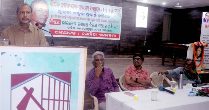 ଭୁବନେଶ୍ଵର: ବିଶିଷ୍ଟ ସମାଜବାଦୀ ନେତା, ବିପ୍ଲବୀ ଚିନ୍ତକ ଏବଂ ପ୍ରାକ୍ତନ ସାଂସଦ କିଶନ ପଟ୍ଟନାୟକଙ୍କ ଶ୍ରାଦ୍ଧବାର୍ଷିକୀ ଅବସରରେ ଲୋହିଆ ଏକାଡେମୀ ପକ୍ଷରୁ ସ୍ମାରକୀ ବକ୍ତୃତାର ଆୟୋଜନ କରାଯାଇଥିଲା। “ଭାରତରେ ଗଣତନ୍ତ୍ର ବିଲୟ ପଥରେ ଅଛି କି?” ବିଷୟରେ ଜେଏନୟୁର ପୂର୍ବତନ ସଭାପତି ତଥା ବିଶିଷ୍ଟ ସାମ୍ବାଦିକ ନଳିନୀ ରଞ୍ଜନ ମହାନ୍ତି ସ୍ମାରକୀ ବକ୍ତୃତା ପ୍ରଦାନ କରିଥିଲେ। ସେ କହିଥିଲେ ଯେ, କିଶନ ପଟ୍ଟନାୟକ ଭାରତ ବର୍ଷର ଜଣେ ନୀତିନିଷ୍ଠ ଓ ସାଲିସବିହୀନ ରାଜନେତା ଭାବେ ପରିଚିତ ଥିଲେ । ଭାରତ ବର୍ଷରେ ସମାଜବାଦୀ ଆନ୍ଦୋଳନକୁ କ୍ରୀୟାଶୀଳ କରିବା ଦିଗରେ ତାଙ୍କର ବିଚାର ଅତ୍ୟନ୍ତ ମୂଲ୍ୟବାନ । ଆଜି ସେ ବିଚାରର ଅବକ୍ଷୟ ହେବାକୁ ଯାଉଛି । ଭାରତ ବର୍ଷର ଗଣତନ୍ତ୍ର ବ୍ୟବସ୍ଥା ଦିନକୁ ଦିନ ଦୁର୍ବଳ ହେବାକୁ ଲାଗିଛି ।