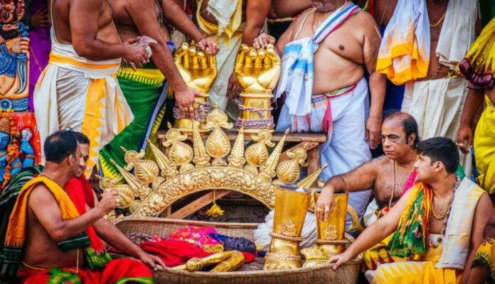 ପ୍ରଥା ଅନୁଯାୟୀ, ଏହି ସମସ୍ତ ଅଳଙ୍କାରଗୁଡ଼ିକୁ ଶ୍ରୀମନ୍ଦିର ରତ୍ନ ଭଣ୍ଡାରରେ ସୁରକ୍ଷିତ ଭାବରେ ସଂରକ୍ଷଣ କରାଯାଏ। ଏହି ବିଶେଷ ଦିନରେ, ଭଣ୍ଡାର ମେକାପ ସେବକମାନେ କଡ଼ା ସୁରକ୍ଷା ମଧ୍ୟରେ ଏଗୁଡ଼ିକୁ ଆନୁଷ୍ଠାନିକ ଭାବରେ ବାହାର କରି ପୁଷ୍ପାଳକ ଏବଂ ଦଇତାପତି ପୁରୋହିତଙ୍କୁ ସାଜସଜ୍ଜା ପାଇଁ ହସ୍ତାନ୍ତର କରନ୍ତି।