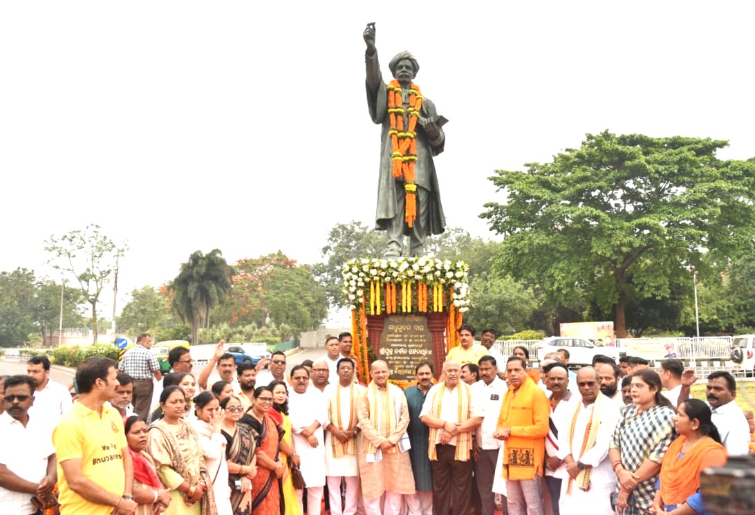  ଲୋକଭବନ ସମ୍ମୁଖ ମଧୁବାବୁଙ୍କ ପ୍ରତିମୂର୍ତିରେ ମାଲ୍ୟାର୍ପଣ କରି ଶ୍ରଦ୍ଧାଞ୍ଜଳି ଜ୍ଞାପନ କଲେ
