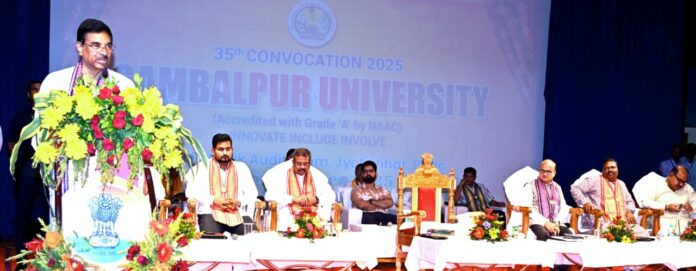 ସମାରୋହକୁ ସମ୍ବୋଧିତ କରି କେନ୍ଦ୍ର ଶିକ୍ଷା ମନ୍ତ୍ରୀ ଧର୍ମେନ୍ଦ୍ର ପ୍ରଧାନ କହିଥିଲେ ଯେ ବିଶ୍ୱବିଦ୍ୟାଳୟଗୁଡିକ ଓଡିଶା ଲୋକଙ୍କ ଖୁସି, ସମୃଦ୍ଧି ଏବଂ କଲ୍ୟାଣ ବୃଦ୍ଧି କରିବା ଉପରେ ଧ୍ୟାନ ଦେବା ଉଚିତ ବୋଲି କହିବା ସହିତ ମାତୃଭାଷାରେ ଶିକ୍ଷାଦାନକୁ ଯଥୋଚିତ ଗୁରୁତ୍ୱ ଦେବା ସମ୍ପର୍କରେ ଆଲୋକପାତ କରିଥିଲେ। ଓଡିଶାକୁ ଏକବିଂଶ ଶତାବ୍ଦୀରେ ଆଗକୁ ନେବାକୁ ହେଲେ ଶିକ୍ଷା ପଦ୍ଧତିକୁ ଆହୁରି ଗୁଣାତ୍ମକ କରିବା ଉପରେ ଗୁରୁତ୍ୱାରୋପ କରିଥିଲେ। ସମ୍ବଲପୁର ବିଶ୍ୱବିଦ୍ୟାଳୟର ଭିତ୍ତିଭୂମି ଏବଂ ଗବେଷଣାର ବିକାଶ ପାଇଁ ବିଭିନ୍ନ ଯୋଜନାରେ ୧୫୭ କୋଟି ଟଙ୍କା ମଞ୍ଜୁର କରାଯାଇଛି ବୋଲି କେନ୍ଦ୍ର ମନ୍ତ୍ରୀ ଶ୍ରୀ ପ୍ରଧାନ କହିବା ସହିତ ଏହା ରାଜ୍ୟରେ ଉଚ୍ଚ ଶିକ୍ଷାକୁ ସୁଦୃଢ଼ କରିବା ଦିଗରେ ପ୍ରତିବଦ୍ଧତାକୁ ପ୍ରତିଫଳିତ କରୁଛି ବୋଲି କହିଥିଲେ।ଏତତ ବ୍ୟତୀତ ସମ୍ବଲପୁର ମାଟିର ମହାନତା ସମ୍ପର୍କରେ ଅବତାରଣା କରିଥିଲେ।