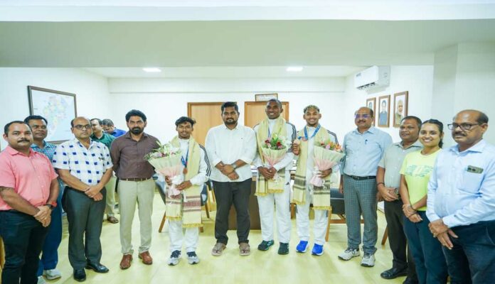 ଭୁବନେଶ୍ୱର: ଜର୍ମାନୀରେ ଅନୁଷ୍ଠିତ ହୋଇଥିବା ୱାର୍ଲଡ଼ ୟୁନିଭରସିଟି ଗେମ୍ସ-୨୦୨୫ରେ କାଂସ୍ଯ ପଦକ ଜିତିଥିବା ପୁରୁଷ ୪x୧୦୦ ରିଲେ ଟିମ୍ର ସଦସ୍ଯ ଥିବା କ୍ରୀଡ଼ାବିତ୍ ଅନିମେଶ କୁଜୁର, ଲାଲୁପ୍ରସାଦ ଭୋଇ ଏବଂ ଡିଏମ୍ ଜୟରାମଙ୍କୁ ଓଡ଼ିଶା କ୍ରୀଡ଼ା ଓ ଯୁବସେବା ବିଭାଗ ତରଫରୁ ସମ୍ବର୍ଦ୍ଧିତ କରାଯାଇଛି। କ୍ରୀଡ଼ାମନ୍ତ୍ରୀ ଶ୍ରୀ ସୂର୍ଯ୍ୟବଂଶୀ ସୂରଜ କ୍ରୀଡ଼ାବିତ୍ମାନଙ୍କୁ ଶୁଭେଚ୍ଛା ଜଣାଇଛନ୍ତି। ଏଥିସହ ୱାର୍ଲଡ଼ ୟୁନିଭରସିଟି ଗେମ୍ସରେ ଓଡ଼ିଶାର କ୍ରୀଡ଼ାବିତ୍ମାନଙ୍କର ଚମତ୍କାର ପ୍ରଦର୍ଶନ ଆଗାମୀ ଭବିଷ୍ୟତର କ୍ରୀଡ଼ାବିତ୍ମାନଙ୍କୁ ପ୍ରୋତ୍ସାହିତ କରିବ ବୋଲି କ୍ରୀଡ଼ାମନ୍ତ୍ରୀ ଶ୍ରୀ ସୂରଜ ମତପ୍ରକାଶ କରିଛନ୍ତି।
