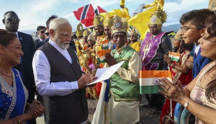 ପ୍ରଧାନମନ୍ତ୍ରୀ ନରେନ୍ଦ୍ର ମୋଦି ପ୍ରଥମ ଥର ପାଇଁ ସରକାରୀ ଗସ୍ତରେ ତ୍ରିନିଦାଦ ଏବଂ ଟୋବାଗୋରେ ପହଞ୍ଚିଛନ୍ତି। ପିଆରକୋ ଅନ୍ତର୍ଜାତୀୟ ବିମାନବନ୍ଦରରେ ତାଙ୍କୁ ଭବ୍ୟ ସ୍ୱାଗତ କରାଯାଇଥିଲା। ପ୍ରଧାନମନ୍ତ୍ରୀ କମଳା ବିସେସର, ୩୮ ଜଣ ମନ୍ତ୍ରୀ ଏବଂ ଚାରି ଜଣ ସାଂସଦ ପ୍ରଧାନମନ୍ତ୍ରୀ ମୋଦିଙ୍କୁ ଗାର୍ଡ ଅଫ୍ ଅନର ସହିତ ସ୍ୱାଗତ କରିଥିଲେ। ଏହି ଗସ୍ତ ମଧ୍ୟ ସ୍ୱତନ୍ତ୍ର କାରଣ ଏହା ୧୯୯୯ ପରେ ପ୍ରଧାନମନ୍ତ୍ରୀ ମୋଦିଙ୍କ ତ୍ରିନିଦାଦକୁ ପ୍ରଥମ ଦ୍ୱିପାକ୍ଷିକ ଗସ୍ତ। କମଳା ପର୍ସାଦ-ବିସେସରଙ୍କ ନିମନ୍ତ୍ରଣରେ ଏହି ଗସ୍ତ ହୋଇଛି।