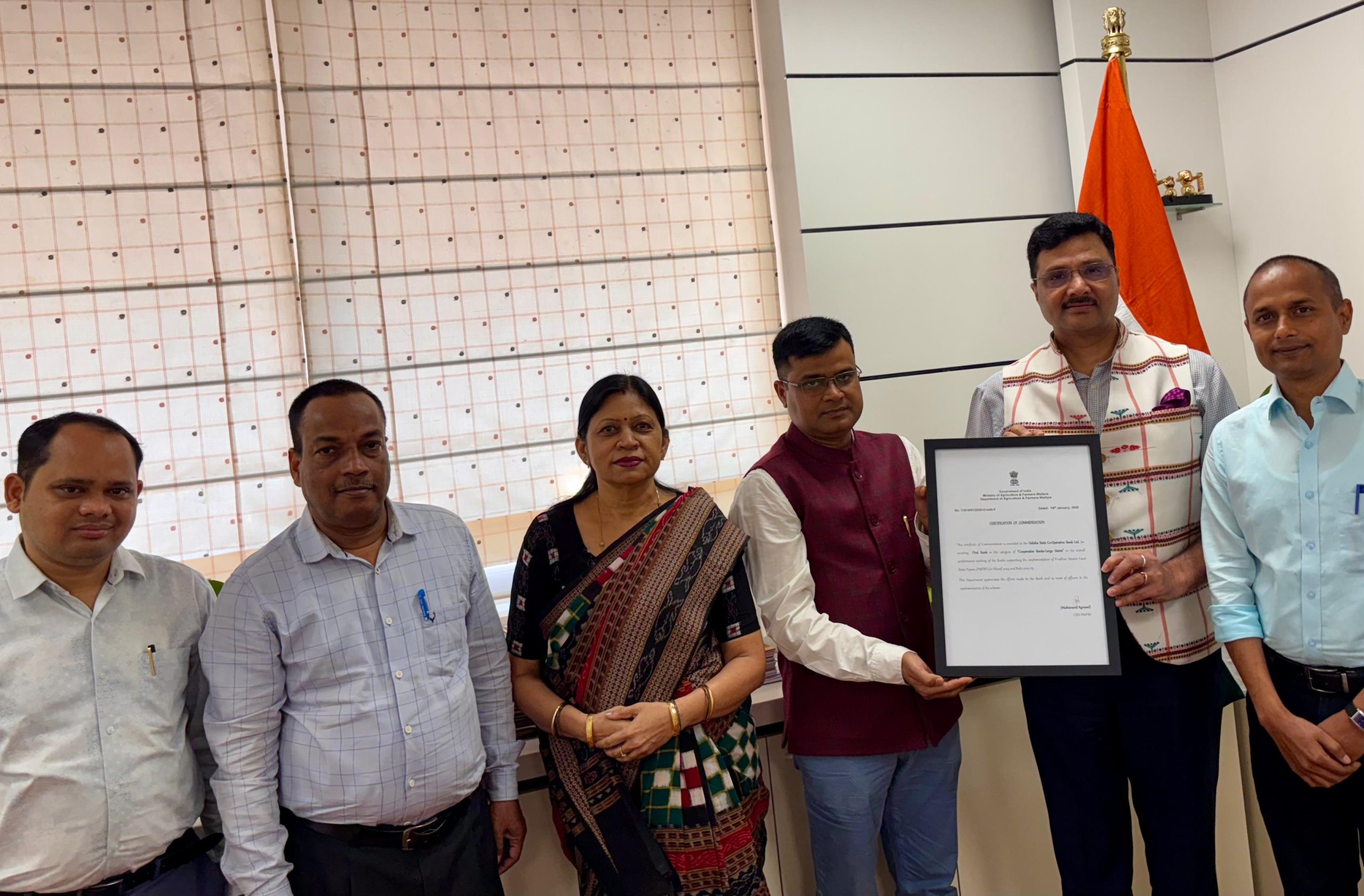 ଖରିଫ ୨୦୨୪ ବର୍ଷରେ, ଓଡ଼ିଶାରେ ପ୍ରଧାନମନ୍ତ୍ରୀ ଫସଲ ବୀମା ଯୋଜନା ଅଧୀନରେ ପଞ୍ଜିକୃତ ୨୨. ୪୧ ଲକ୍ଷ ଚାଷୀଙ୍କ ମଧ୍ୟରୁ, ଏହି ବ୍ୟାଙ୍କଗୁଡ଼ିକ ମିଳିତ ଭାବରେ ୧୫ ଲକ୍ଷରୁ ଉର୍ଦ୍ଧ୍ୱ ଚାଷୀଙ୍କୁ ପଞ୍ଜୀକୃତ କରିଥିଲେ, ସେଥିରେ ଋଣଗ୍ରହୀ ଏବଂ ଅଣ-ଋଣଗ୍ରହୀ ଉଭୟ ବର୍ଗ ଅନ୍ତର୍ଭୁକ୍ତ ଥିଲେ । ସେହିପରି, ୨୦୨୪-୨୫ ରବି ବର୍ଷରେ, ସେମାନେ ରାଜ୍ୟରେ ମୋଟ ୧. ୮୧ ଲକ୍ଷ ପଞ୍ଜିକରଣ ମଧ୍ୟରୁ ୧ ଲକ୍ଷରୁ ଉର୍ଦ୍ଧ୍ୱ ଚାଷୀଙ୍କୁ ପଞ୍ଜୀକୃତ କରିଥିଲେ। ପାଇଥିବା ପୁରସ୍କାରକୁ କୃଷି ନିର୍ଦ୍ଦେଶକ ଶ୍ରୀ ଶୁଭମ୍ କୁମାର ସକ୍ସେନା, ଅତିରିକ୍ତ କୃଷି ନିର୍ଦ୍ଦେଶକ ଶ୍ରୀମତୀ ଲିଟି ପଟ୍ଟନାୟକ, ଯୁଗ୍ମ ଶାସନ ସଚିବ, ସମବାୟ ଶ୍ରୀ ସଂଗ୍ରାମ ରାଉତ, ସିଜିଏମ ୟୁକୋ ବ୍ୟାଙ୍କ, ଇନଚାର୍ଜ ଏସଏଲବିସି ଓ ଅନ୍ୟାନ୍ୟ ବରିଷ୍ଠ ଅଧିକାରୀଙ୍କ ଉପସ୍ଥିତିରେ କୃଷି ଓ କୃଷକ ସଶକ୍ତିକରଣ ବିଭାଗର ଅତିରିକ୍ତ ମୁଖ୍ୟ ଶାସନ ସଚିବ ଡକ୍ଟର ଅରବିନ୍ଦ କୁମାର ପାଢୀଙ୍କୁ ଆନୁଷ୍ଠାନିକ ଭାବରେ ପୁରସ୍କାର ପ୍ରଦାନ କରାଯାଇଛି ।