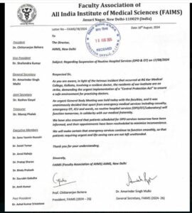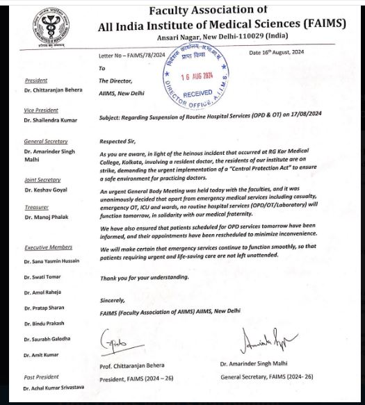ଦେଶବ୍ୟାପୀ ଡାକ୍ତର ସଂଘର ଆନ୍ଦୋଳନ; ଆଜି ଏଫଏଆଇଏମରେ ଓପିଡି ଏବଂ ଓଟି ସେବା ବନ୍ଦ