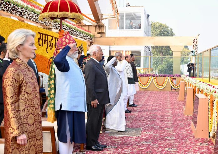 ଉତ୍ସାହ ଏବଂ ରାଷ୍ଟ୍ର ଗୌରବରେ ପରିପୂର୍ଣ୍ଣ ସାଧାରଣତନ୍ତ୍ର ଦିବସ ସମାରୋହକୁ ପ୍ରଶଂସା କଲେ ପ୍ରଧାନମନ୍ତ୍ରୀ ଆମର ଗଣତନ୍ତ୍ର ଦିବସ ସମାରୋହରେ ଭାରତକୁ ୟୁରୋପୀୟ ପରିଷଦ ଅଧ୍ୟକ୍ଷ ଆଣ୍ଟୋନିଓ କୋଷ୍ଟା ଏବଂ ୟୁରୋପୀୟ ଆୟୋଗ ଅଧ୍ୟକ୍ଷ ଉର୍ସୁଲା ଭନ୍ ଡେର୍ ଲିଏନଙ୍କୁ ଆତିଥ୍ୟ ପ୍ରଦାନ କରିବାର ସୌଭାଗ୍ୟ ମିଳିଛି: ପ୍ରଧାନମନ୍ତ୍ରୀ