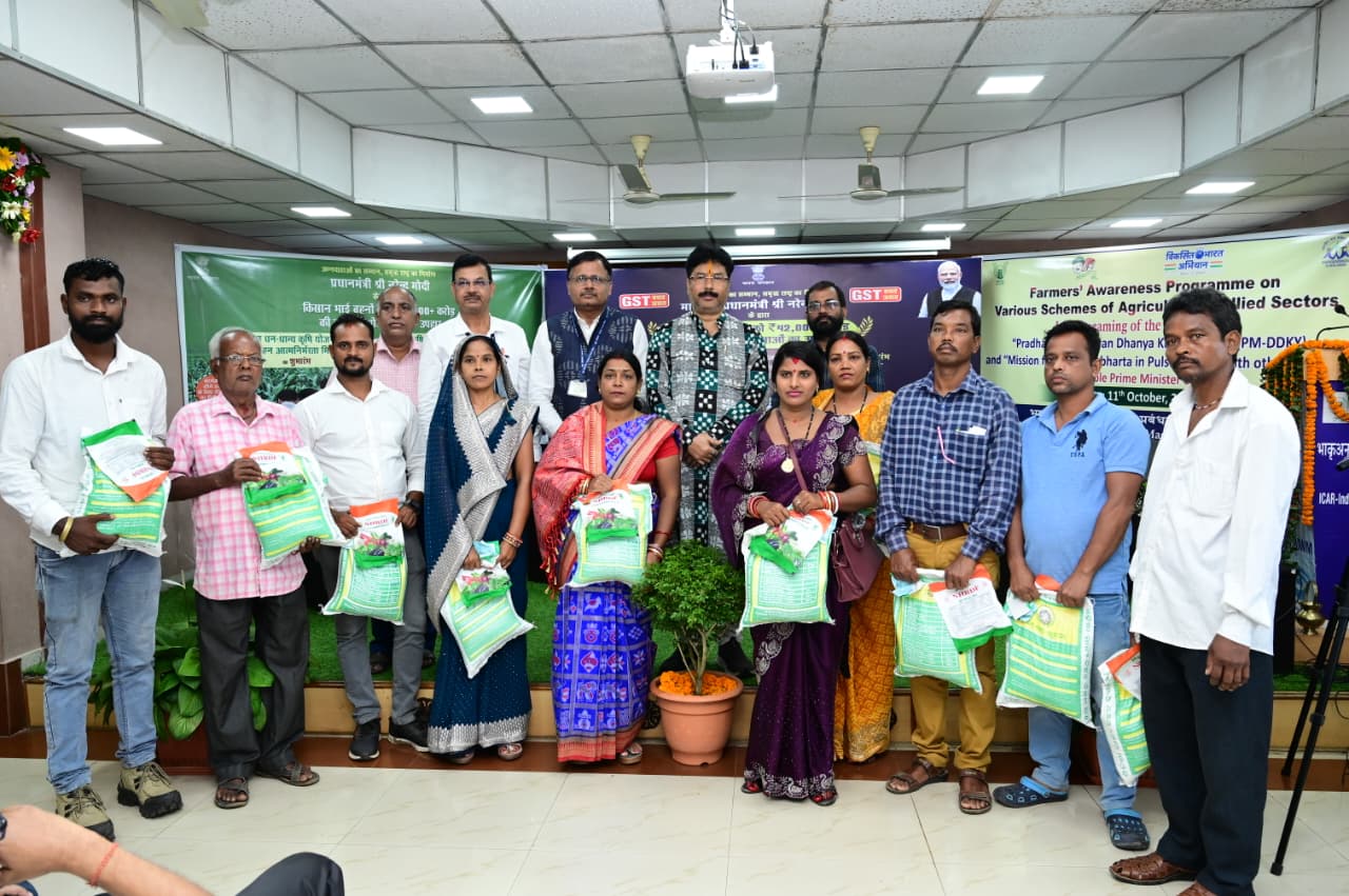 ନିଜ ଅଭିଭାଷଣରେ ମାନ୍ୟବର ମନ୍ତ୍ରୀ ଡକ୍ଟର ମହାପାତ୍ର, ପ୍ରଧାନମନ୍ତ୍ରୀଙ୍କ କୁଶଳ ନେତୃତ୍ବରେ ଦେଶର ଦ୍ରୁତ ପ୍ରଗତି ଉପରେ ଗୁରୁତ୍ଵ ପ୍ରଦାନ କରିଥିଲେ । ଶ୍ରୀଯୁକ୍ତ ମୋଦିଙ୍କର ଲକ୍ଷ୍ୟ ହେଉଛି ଭାରତର କୃଷକକୁ ସଶକ୍ତ କରି ଦେଶକୁ ବିଶ୍ଵର ଭାତହାଣ୍ଡି କରି ଗଢି ତୋଳିବା । ଡାଲି ଜାତୀୟ ଫସଲର ଆବଶ୍ୟକତାକୁ ପୂର୍ଣ୍ଣ କରିବା ପାଇଁ ଭାରତ ଆମଦାନୀ ଉପରେ ନିର୍ଭରଶୀଳ ଯାହା ଏକ ବିଡମ୍ବନାର ବିଷୟ ଅଟେ । ସରକାରଙ୍କ ଲକ୍ଷ୍ୟ ହେଉଛି ଡାଲି ଜାତୀୟ ଫସଲର ପରିଧିକୁ ୨୭.୫ ନିୟୁତ ହେକ୍ଟରରୁ ବୃଦ୍ଧି କରି ବର୍ଷ ୨୦୩୦-୩୧ ସୁଦ୍ଧା ୩୧ ନିୟୁତ ହେକ୍ଟରରେ ପହଞ୍ଚାଇବା । ଚାଷୀ ଭାଇ ମାନଙ୍କୁ ୧୨.୬ ନିୟୁତ କ୍ଵିଣ୍ଟାଲ ପ୍ରାମାଣିକ ବିହନ ଓ ପାଖା ପାଖି ୮୮ ଲକ୍ଷ ମାଗଣା ମଞ୍ଜି ମିନି କିଟ ବଣ୍ଟନ କରାଯିବ । ସମଗ୍ର ଦେଶରେ ୧୦୦୦ ଖାଦ୍ଯ ପ୍ରକ୍ରିୟାକରଣ ୟୁନିଟ ସ୍ଥାପନ ପାଇଁ ଲକ୍ଷ୍ୟ ଧାର୍ଯ୍ୟ କରାଯାଇଛି , ଯେଉଁଥିରେ ପ୍ରତ୍ଯେକ ୟୁନିଟ ପିଛା ୨୫ ଲକ୍ଷ ଟଙ୍କାର ସବସିଡି ବ୍ୟବସ୍ଥା ରହିଛି । ପ୍ରଧାନମନ୍ତ୍ରୀ ଧନ ଧାନ୍ୟ ଯୋଜନାରେ ଭାରତ ସରକାର ସମଗ୍ର ଦେଶରେ କମ ଉତ୍ପାଦକତା ଥିବା ୧୦୦ ଟି ଜିଲ୍ଲାକୁ ଚିହ୍ନଟ କରିଛନ୍ତି, ଏଥିରୁ ଓଡିଶାର ଚାରୋଟି ଜିଲ୍ଲା ରହିଛି ଯେଉଁ ଗୁଡିକ ହେଲା କନ୍ଧମାଳ, ମାଲକାନଗିରି, ନୂଆପଡା ଓ ସୁନ୍ଦରଗଡ଼ । ଏହିସବୁ ଜିଲ୍ଲା ମାନଙ୍କରେ ଜଳ ସେଚନର ଉନ୍ନତି, ଋଣ ବ୍ୟବସ୍ଥା, ଫସଲ ସଂରକ୍ଷଣ ଓ ଫସଲ ବିବିଧିକରଣ ଉପରେ ଗୁରୁତ୍ଵ ଦିଆଯାଇ ଉଭୟ ଉତ୍ପାଦନ ଓ ଉତ୍ପାଦକତା ବୃଦ୍ଧି କରାଯିବ ।