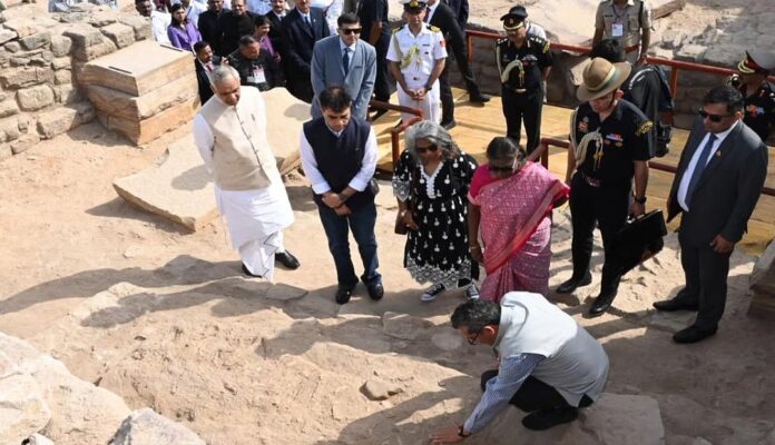 ଗୁଜରାଟ: ରାଷ୍ଟ୍ରପତି ଦ୍ରୌପଦୀ ମୁର୍ମୁ ଶନିବାର ଦିନ ଗୁଜରାଟର କଚ୍ଛ ଜିଲ୍ଲାର ଖାଦିର ବେଟ୍ ଦ୍ୱୀପରେ ଅବସ୍ଥିତ ସିନ୍ଧୁ ସଭ୍ୟତାର ଏକ ପ୍ରମୁଖ ପ୍ରତ୍ନତାତ୍ତ୍ୱିକ ସ୍ଥଳ ଧୋଲାଭିରା ପରିଦର୍ଶନ କରିଛନ୍ତି, ଅଧିକାରୀମାନେ କହିଛନ୍ତି। ଏକ ସରକାରୀ ବିଜ୍ଞପ୍ତିରେ କୁହାଯାଇଛି ଯେ ୟୁନେସ୍କୋ ବିଶ୍ୱ ଐତିହ୍ୟ ସ୍ଥଳ ଏବଂ ୫,୦୦୦ ବର୍ଷ ପୁରୁଣା ସଭ୍ୟତାର ଏକ ମହାନଗର ପରିଦର୍ଶନ ସମୟରେ, ରାଷ୍ଟ୍ରପତି ମୁର୍ମୁଙ୍କୁ ପ୍ରାଚୀନ ମାନବ ସଭ୍ୟତାର ପର୍ଯ୍ୟାୟକ୍ରମେ ବିକାଶ ଏବଂ ନଗର ଯୋଜନା ବିଷୟରେ ଗଭୀର ସୂଚନା ଦିଆଯାଇଥିଲା। ଭାରତୀୟ ପ୍ରତ୍ନତତ୍ତ୍ୱ ସର୍ବେକ୍ଷଣ (ଏଏସଆଇ)ର ମହାନିର୍ଦ୍ଦେଶକ ଯଦୁବୀର ସିଂହ ରାୱତ ତାଙ୍କୁ ଏହି ସ୍ଥାନ ବିଷୟରେ ସୂଚନା ଦେଇଥିଲେ – ଏହା ୩୦୦୦-୧୫୦୦ ଖ୍ରୀଷ୍ଟପୂର୍ବ ମଧ୍ୟରେ ଥିବା ସର୍ବୋତ୍ତମ ସଂରକ୍ଷିତ ସହରୀ ବସତି ମଧ୍ୟରୁ ଗୋଟିଏ। ରାଷ୍ଟ୍ରପତି ମୁର୍ମୁ ହରପ୍ପା ସଂସ୍କୃତି, ଗୃହ ନିର୍ମାଣ, ସେ ସମୟରେ ପ୍ରଚଳିତ ଜଳ ସଂରକ୍ଷଣ ଏବଂ ନିଷ୍କାସନ ବ୍ୟବସ୍ଥା ଏବଂ ପ୍ରାଚୀନ ମହାନଗରର ବିଶାଳ ପ୍ରାଚୀର ବିଷୟରେ ବିସ୍ତୃତ ସୂଚନା ପାଇଥିଲେ ବୋଲି ଏଥିରେ କୁହାଯାଇଛି। “ପ୍ରାଚୀନ ମଣି ତିଆରି କାରଖାନା, ସୁଯୋଜନାବଦ୍ଧ ଷ୍ଟେପ୍ୱେଲ୍, ଉପର ସହର, ମଧ୍ୟ ସହର ଏବଂ ତଳ ସହର ଇତ୍ୟାଦି ଦେଖି ସେ ଅଭିଭୂତ ହୋଇଯାଇଥିଲେ,” ପ୍ରକାଶନରେ କୁହାଯାଇଛି। ଏଥିରେ କୁହାଯାଇଛି ଯେ ଏଏସଆଇ ଦ୍ୱାରା ଧୋଲାବିରା ସ୍ଥାନର ଖନନ ସମୟରେ ମିଳିଥିବା ବିଭିନ୍ନ କଳାକୃତି, ମାଟିପାତ୍ରର ଅବଶେଷ, ବିଭିନ୍ନ ତମ୍ବା ଜିନିଷ, ଓଜନ ଉପକରଣ ଏବଂ ପଥର ଅଳଙ୍କାର ତାଙ୍କୁ ଦେଖାଯାଇଥିଲା। ପରିଦର୍ଶନ ଶେଷରେ, ମୁର୍ମୁ ଧୋଲାବିରା ସ୍ଥଳ ପରିସରରେ ଚାରା ରୋପଣ ମଧ୍ୟ କରିଥିଲେ। ଏହି ଅବସରରେ ଗୁଜରାଟ ରାଜ୍ୟପାଳ ଆଚାର୍ଯ୍ୟ ଦେବବ୍ରତ, କଚ୍ଛର ଦାୟିତ୍ୱରେ ଥିବା ମନ୍ତ୍ରୀ ପ୍ରଫୁଲ ପାନଶେରିଆ, କଚ୍ଛ ଜିଲ୍ଲା କଲେକ୍ଟର ଅମିତ ଆରୋରା ଏବଂ ବରିଷ୍ଠ ଅଧିକାରୀମାନେ ଉପସ୍ଥିତ ଥିଲେ।