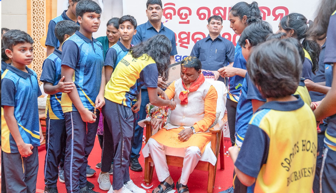 ଭୁବନେଶ୍ୱର : ଆଜି ପବିତ୍ର ରକ୍ଷା ବନ୍ଧନ ଉତ୍ସବ ଅବସରରେ କଳିଙ୍ଗ ଷ୍ଟାଡିୟମ୍ କ୍ରୀଡ଼ା ଛାତ୍ରାବାସରେ ରହୁଥିବା ଛାତ୍ରୀମାନେ ମୁଖ୍ୟମନ୍ତ୍ରୀ ମୋହନ ଚରଣ ମାଝୀଙ୍କୁ ସାକ୍ଷାତ କରି ତାଙ୍କ ହାତରେ ରାକ୍ଷୀ ବାନ୍ଧିଛନ୍ତି। କୁନି କୁନି ପିଲାମାନେ ବନ୍ଦାପନା କରି ମୁଖ୍ୟମନ୍ତ୍ରୀଙ୍କୁ ରାକ୍ଷୀ ବାନ୍ଧିବା ସହିତ ମିଠା ଖୁଆଇ ଦେଇଥିଲେ। ମୁଖ୍ୟମନ୍ତ୍ରୀ ସମସ୍ତଙ୍କୁ ଆଦରର ସହ ଉପହାର ଦେଇଥିଲେ। ଏଥି ସହିତ ପିଲାମାନଙ୍କ ଉଜ୍ଜଳ ଭବିଷ୍ୟତର କାମନା ମଧ୍ୟ କରିଥିଲେ।