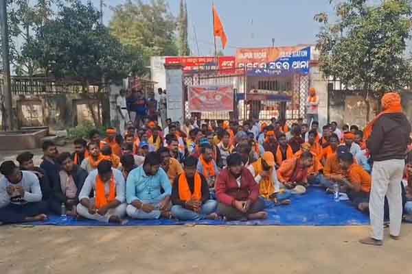 ବେଆଇନ୍ ଗୋ ଚାଲାଣ ପ୍ରତିବାଦରେ ସଦର ଥାନା ସମ୍ମୁଖରେ ରାଷ୍ଟ୍ରୀୟ ବଜରଙ୍ଗ ଦଳର ଧାରଣା