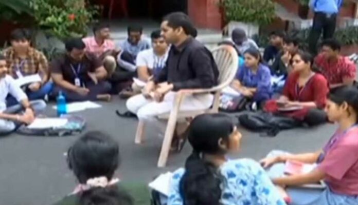 କଟକ: ରାସ୍ତାରେ ପାଠ ପଢ଼ିଛନ୍ତି ରେଭେନ୍ଶା ବିଶ୍ବବିଦ୍ୟାଳୟ ଛାତ୍ରୀଛାତ୍ର। ବିଶ୍ୱବିଦ୍ୟାଳୟରେ କ୍ଲାସ ରୁମ୍ ଅସୁରକ୍ଷିତ ଦର୍ଶାଇ ପ୍ରତିବାଦ କରିଛନ୍ତି। ଯୁକ୍ତ ୩ କଳାର ୨ୟ ବର୍ଷର ଛାତ୍ରୀଛାତ୍ର ରାସ୍ତାରେ ବସି ପଢ଼ିଛନ୍ତି। ଅଧ୍ୟାପକ ମଧ୍ୟ ରାସ୍ତାରେ ବସି ଛାତ୍ରୀଛାତ୍ରଙ୍କୁ ପଢ଼ାଇଛନ୍ତି। କ୍ଲାସରୁମ୍ ଅସୁରକ୍ଷିତ ହୋଇପଡ଼ିଥିବାରୁ ମରାମତି ଦାବି କରିଛନ୍ତି। ପୂର୍ବରୁ ଏନେଇ ଦାବି କରି ଆସୁଥିଲେ ବି କର୍ତ୍ତୃପକ୍ଷ ଶୁଣୁ ନ ଥିବା ଅଭିଯୋଗ ହୋଇଛି।