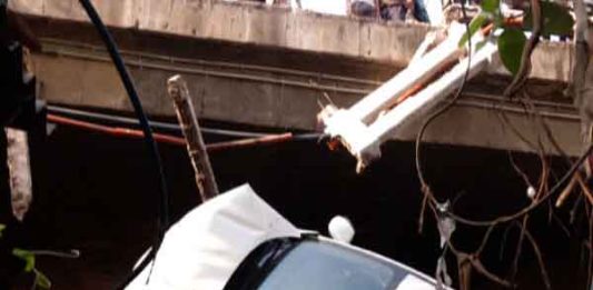 ସଡକ ଦୁର୍ଘଟଣା: ଓଭରବ୍ରିଜ ବ୍ୟାରିକେଡ ଭାଙ୍ଗି ତଳକୁ ଖସିଲା କାର