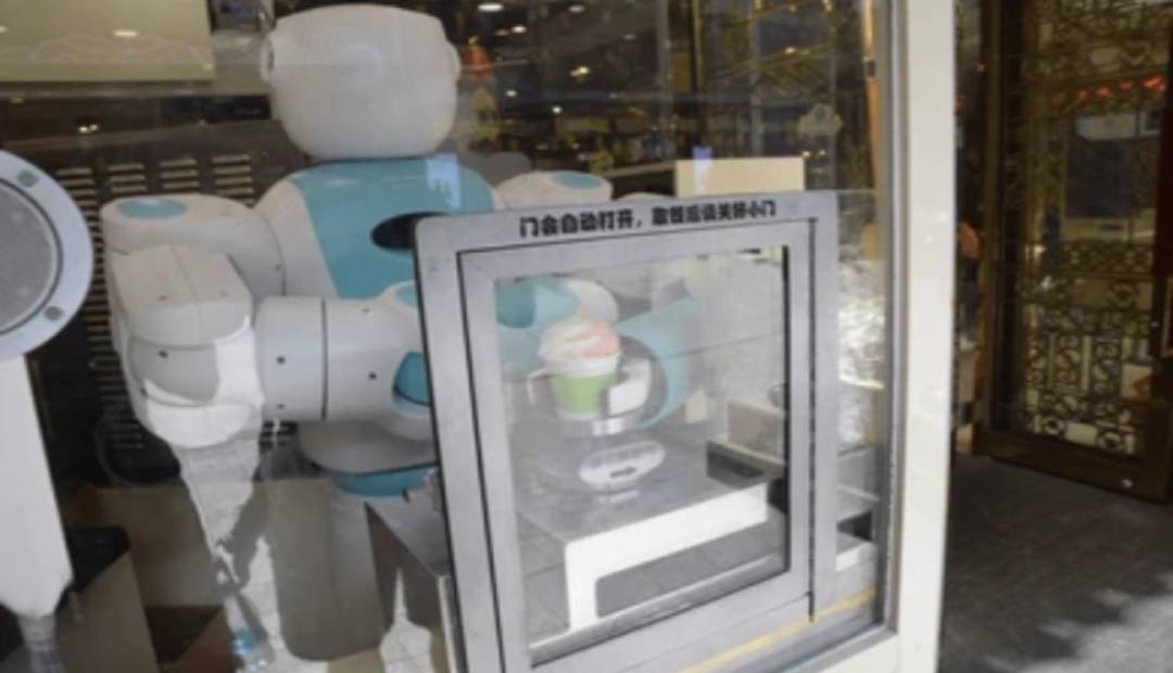 ଆଇସକ୍ରିମ୍ ବିକ୍ରି କରୁଛି ରୋବୋଟ୍। ଜଣେ ଅର୍ଡର ଦେବା ମାତ୍ରେ ରୋବୋଟ୍ କାମ କରିବା ଆରମ୍ଭ କରିଦିଏ। ପ୍ରଥମେ ସେ କପ୍ ଉଠାଇଥାଏ ଏବଂ ତା’ପରେ ସେଥିରେ ଆଇସ୍କ୍ରିମ୍ ରଖେ। ଏହା ପରେ କାଚ ଦ୍ୱାର ଖୋଲିଯାଏ ଏବଂ ଗ୍ରାହକ ଆଇସ୍କ୍ରିମ୍ ନେଇ ଉପଭୋଗ କରନ୍ତି। ଏହି ରୋବୋଟ୍ ଚୀନ୍ର ଅନେକ ସ୍ଥାନରେ ବ୍ୟବହୃତ ହେଉଛି। ଏହି ରୋବୋଟ୍ଗୁଡ଼ିକ କଫି ଦୋକାନ, ପାର୍କ, ସପିଂ ମଲ୍ ଇତ୍ୟାଦି ସ୍ଥାନରେ କାମ କରୁଛନ୍ତି। ସାଧାରଣତଃ ଏପରି ରୋବୋଟ୍ଗୁଡ଼ିକ ଅଡିଓ ସହିତ ମଧ୍ୟ ସଂଯୁକ୍ତ ଥାଆନ୍ତି ଏବଂ ଗ୍ରାହକଙ୍କ ସ୍ୱର ଶୁଣି କାମ କରନ୍ତି। ଏହା ବ୍ୟତୀତ ଚୀନ୍ର ଆହୁରି ଅନେକ ରୋବୋଟ୍ ଖବରରେ ଅଛନ୍ତି। ଏପରି ଏକ ରୋବୋଟ୍ ମଧ୍ୟ ଅଛି ଯାହା ସହଜରେ ମଣିଷଙ୍କ ସହ କଥା ହୋଇପାରୁଛି ଏବଂ ସେମାନଙ୍କୁ ବିଭିନ୍ନ ସୂଚନା ଦେଇପାରୁଛି।