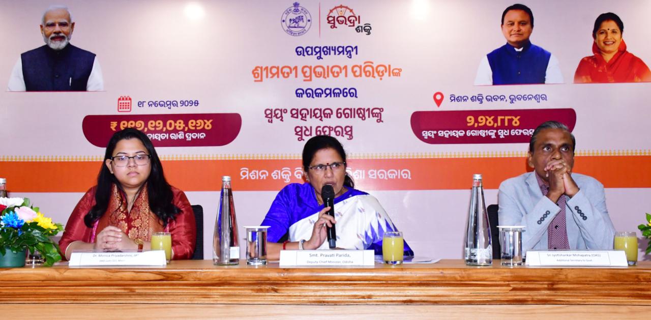 ଆଜିର କାର୍ଯ୍ୟକ୍ରମରେ ଏକ ଗୁରୁତ୍ୱପୂର୍ଣ୍ଣ ପଦକ୍ଷେପ ସ୍ୱରୂପ ଉପମୁଖ୍ୟମନ୍ତ୍ରୀ ଶ୍ରୀମତୀ ପରିଡା ୨ ଲକ୍ଷ ୨୪ ହଜାର ୮୮୪ଟି ସ୍ଵୟଂ ସହାୟକ ଗୋଷ୍ଠୀଙ୍କୁ ମୋଟ ୧୧୭ କୋଟି ୧୨ ଲକ୍ଷ ୫ ହଜାର ୧୬୪ ଟଙ୍କାର ସୁଧ ରାଶି ଫେରସ୍ତ କରିଥିଲେ। ଏହି ପଦକ୍ଷେପ ମହିଳା-ନେତୃତ୍ୱାଧୀନ ଉଦ୍ୟୋଗ ଗୁଡ଼ିକୁ ଆର୍ଥିକ ଭାବେ ସଶକ୍ତ କରିବା ସହିତ ରାଜ୍ୟର ବିକାଶ ଏବଂ ଆର୍ଥିକ ପ୍ରଗତି ପ୍ରତି ସରକାରଙ୍କ ସଂକଳ୍ପକୁ ପୁଣିଥରେ ସ୍ପଷ୍ଟ କରିଛି। ଏହି କାର୍ଯ୍ୟକ୍ରମରେ ମିଶନ ଶକ୍ତି ବିଭାଗ ନିର୍ଦ୍ଦେଶକା ଡଃ ମୋନିକା ପ୍ରିୟଦର୍ଶିନୀ, ବିଭାଗୀୟ ଅତିରିକ୍ତ ଶାସନ ସଚିବ ଶ୍ରୀ ଜ୍ୟୋତି ଶଙ୍କର ମହାପାତ୍ର ଓ ଓଡ଼ିଶା ଜୀବିକା ମିଶନର ବରିଷ୍ଠ ଅଧିକାରୀମାନେ ଏବଂ ବିଭିନ୍ନ ବ୍ୟାଙ୍କର ପ୍ରତିନିଧିମାନେ ଉପସ୍ଥିତ ଥିଲେ। ମିଶନ ଶକ୍ତି ବିଭାଗର ଏହି ପଦକ୍ଷେପ ମହିଳା ଉଦ୍ୟୋଗୀ ମାନଙ୍କ ଦକ୍ଷତା ବୃଦ୍ଧି, ବିକାଶ ଓ ମହିଳା ସଶକ୍ତିକରଣ ପ୍ରତି ଅଟଳ ପ୍ରତିବଦ୍ଧତାକୁ ପ୍ରକାଶ କରୁଛି, ଯାହା ଓଡ଼ିଶାର ମହିଳାମାନଙ୍କ ସାମାଜିକ ଓ ଆର୍ଥିକ ସଶକ୍ତିକରଣର ଯାତ୍ରାକୁ ଆହୁରି ଉଜ୍ଜ୍ୱଳ କରିବ ।