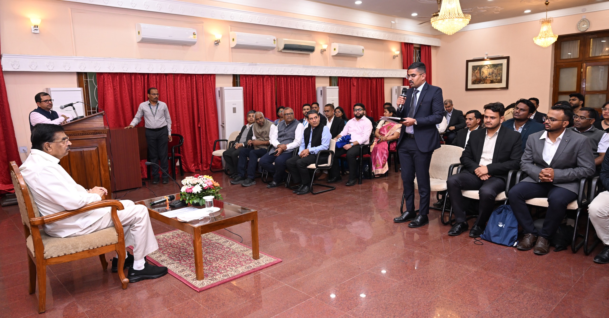 ଆଲୋଚନା ସମୟରେ ରାଜ୍ୟପାଳ ତାଲିମର ପ୍ରକୃତି, ହିତାଧିକାରୀଙ୍କ ଆଶା, ଶିଳ୍ପ ସହିତ ସଂଯୋଗ ଏବଂ ତାଲିମ ସମାପ୍ତ ହେବା ପରେ ଉପଲବ୍ଧ ନିଯୁକ୍ତି ସୁଯୋଗ ବିଷୟରେ ପଚାରି ବୁଝିଥିଲେ । ଅଂଶଗ୍ରହଣକାରୀମାନେ ତାଲିମ ଏବଂ ଦକ୍ଷତା ବିକାଶ ସମ୍ବନ୍ଧୀୟ ବିଭିନ୍ନ ପ୍ରଶ୍ନ ମଧ୍ୟ ପଚାରିଥିଲେ ଏବଂ ରାଜ୍ୟପାଳ ସେମାନଙ୍କର ସନ୍ଦେହ ଦୂର କରିଥିଲେ। ଆଲୋଚନାରେ ଖୁସି ପ୍ରକଟ କରି ରାଜ୍ୟପାଳ ଅଂଶଗ୍ରହଣକାରୀମାନଙ୍କୁ ମୁଖ୍ୟମନ୍ତ୍ରୀଙ୍କ ଦକ୍ଷତା ବିକାଶ ଫେଲୋସିପ୍ କାର୍ଯ୍ୟକ୍ରମ ଅଧୀନରେ ସେମାନଙ୍କ ପ୍ରୟାସରେ ସଫଳତା ପାଇଁ ଶୁଭକାମନା ଜଣାଇଥିଲେ l