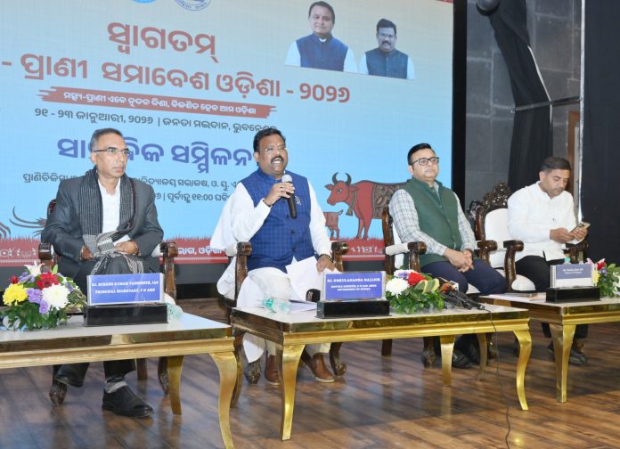 ଭୁବନେଶ୍ଵର: ରାଜ୍ୟସ୍ତରୀୟ “ମତ୍ସ୍ୟ-ପ୍ରାଣୀ ସମାବେଶ ଓଡ଼ିଶା-୨୦୨୬” ଆୟୋଜନ ପରିପ୍ରେକ୍ଷୀରେ ଏକ ସାମ୍ବାଦିକ ସମ୍ମିଳନୀ ଆଜି ଭେଟେରିନାରୀ କଲେଜ ଅଡ଼ିଟୋରିୟମଠାରେ ଅନୁଷ୍ଠିତ ହୋଇଯାଇଛି । ଏହି ସାମ୍ବାଦିକ ସମ୍ମିଳନୀରେ ମାନ୍ୟବର ମନ୍ତ୍ରୀ ଶ୍ରୀ ଗୋକୁଳାନନ୍ଦ ମଲ୍ଲିକ ଯୋଗ ଦେଇ ସମାବେଶ ସମ୍ପର୍କରେ ଗଣମାଧ୍ୟମ ସମ୍ମୁଖରେ ସବିଶେଷ ତଥ୍ୟ ରଖିଥିଲେ । ପରେ ପରେ ଗଣମାଧ୍ୟମ ପ୍ରତିନିଧିଙ୍କ ପ୍ରଶ୍ନର ଉତ୍ତର ରଖି କହିଥିଲେ, ମତ୍ସ୍ୟଚାଷୀ ଓ ପ୍ରାଣିପାଳକଙ୍କ ପାଇଁ ଏହି ସମାବେଶ ସଚେତନତା ଓ ସମୃଦ୍ଧିର ମହାକୁମ୍ଭ ସାଜିବ । କ୍ଷୀର, ମାଂସ, ଅଣ୍ଡା ଓ ମାଛ ଉତ୍ପାଦନରେ ଓଡ଼ିଶାକୁ ଆତ୍ମନିର୍ଭରଶୀଳ କରିବା ପାଇଁ ନିଆଯାଉଥିବା ପଦକ୍ଷେପ ସମ୍ପର୍କରେ ମଧ୍ୟ ସେ ତଥ୍ୟ ରଖିଥିଲେ ।