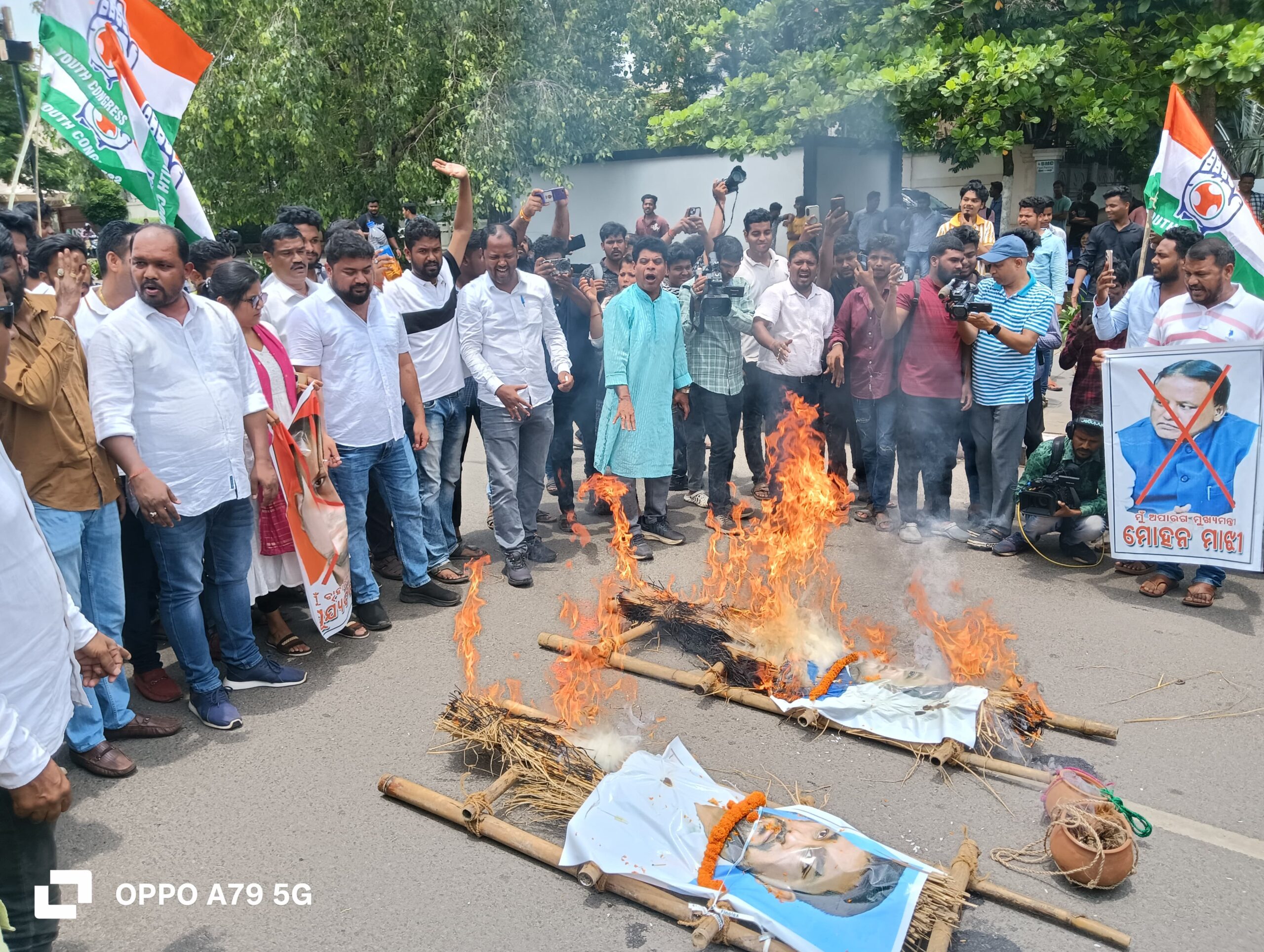ଭୁବନେଶ୍ୱର: ପ୍ରଦେଶ ଯୁବ କଂଗ୍ରେସ ସଭାପତି ଶ୍ରୀ ରଣଜିତ ପାତ୍ରଙ୍କ ନେତୃତ୍ୱରେ ଆଜି ଓଡ଼ିଶାର ମୁଖ୍ୟମନ୍ତ୍ରୀ ମୋହନ ମାଝୀ ଓ ଉଚ୍ଚ ଶିକ୍ଷାମନ୍ତ୍ରୀଙ୍କର ଫ୍ଲେକ୍ସ ନିର୍ମିତ ଶବଦାହ ପ୍ରତିକାତ୍ମକ ଭାବରେ ବିଜେପି କାର୍ଯ୍ୟାଳୟ ନିକଟରେ ସମାପିତ ହୋଇଥିଲା। ପ୍ରଦେଶ ଯୁବ କଂଗ୍ରେସ କର୍ମକର୍ତ୍ତାମାନେ ଏକ ରାଲିରେ “ରାମ ନାମ ସତ୍ୟହେ, ହରିନାମ ସତ୍ୟହେ” ଉଚ୍ଚାରଣ କରି ଦୁଇଟି କୋକେଇ କାନ୍ଧେଇଥିଲେ ସେହି କୋକେଇରେ ମୁଖ୍ୟମନ୍ତ୍ରୀ ଓ ଉଚ୍ଚଶିକ୍ଷାମନ୍ତ୍ରୀଙ୍କର ଦୁଇଟି ଫ୍ଲେକ୍ସ ନିର୍ମିତ ଶବ ରଖାଯାଇଥିଲା। ସେପଟେ ଫକୀରମୋହନ ସ୍ୱୟଂଶାସିତ ମହାବିଦ୍ୟାଳୟର ଛାତ୍ରୀଙ୍କ ଶବ ତାଙ୍କ ନିଜ ଗାଁରେ ଦାହ ହେଉଥିବା ବେଳେ ଭୁବନେଶ୍ୱରରେ ବିଜେପି କାର୍ଯ୍ୟାଳୟରେ ମୁଖ୍ୟମନ୍ତ୍ରୀ ଓ ଉଚ୍ଚଶିକ୍ଷାମନ୍ତ୍ରୀଙ୍କର ଫ୍ଲେକ୍ସ ନିର୍ମିତ ଶବକୁ ଯୁବ କଂଗ୍ରେସ ପ୍ରତିକାତ୍ମକ ଭାବେ ଦାହ କରାଯାଇଥିଲା। ଶବଦାହର ସମସ୍ତ ବିଧି ଏହି କାର୍ଯ୍ୟକ୍ରମରେ ଅନୁସରଣ କରାଯାଇଥିଲା।