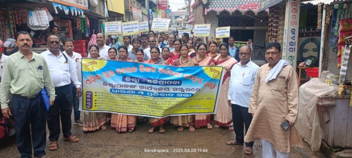 କେନ୍ଦ୍ରାପଡ଼ା: ଓଡିଶା ସ୍କୁଲ କଲେଜ ଶିକ୍ଷକ ଓ କର୍ମଚାରୀ ସମନ୍ୱୟ ସମିତିର ଆହ୍ୱାନରେ ୫ଦଫା ଦାବି ନେଇ କେନ୍ଦ୍ରାପଡା ଜିଲ୍ଲା ସମନ୍ୱୟ ସମିତିର ପକ୍ଷରୁ ଜିଲ୍ଲାପାଳଙ୍କ କାର୍ଯ୍ୟାଳୟ ସମ୍ମୁଖରେ ଧାରଣା ଓ ପ୍ରତିବାଦ ସଭା ଅନୁଷ୍ଠିତ ହୋଇଥିଲା। ଜିଲ୍ଲା ଓଷ୍ଟାର ସଭାପତି ଅଶୋକ କୁମାର ପରିଡାଙ୍କ ସଭାପତିତ୍ୱରେ ଅନୁଷ୍ଠିତ ପ୍ରତିବାଦ ସଭାରେ ପ୍ରାରମ୍ଭରେ ସମନ୍ୱୟ ସମିତିର ଆବାହକ ତଥା ଜିଲ୍ଲା ଓଷ୍ଟା ସମ୍ପାଦକ ଭଗବାନ ସାହୁ ଉଦ୍ଦେଶ୍ୟ ଜ୍ଞାପନ କରିଥିଲେ ବେଳେ କେନ୍ଦ୍ରାପଡା ବିଧାୟକ ଗଣେଶ୍ୱର ବେହେରା, ବିଜେପି ସଭାନେତ୍ରୀ ଗିତାଞ୍ଜଳୀ ସେଠୀ, ବିଜେପି ନେତା ସଲିମ ଖାନ, ସିପିଆଇ ନେତା ରମଣୀ ରଞ୍ଜନ ରାଉତରାୟ, ସିପିଆଇଏମ୍ ଜିଲ୍ଲା ସମ୍ପାଦକ ଗୟାଧର ଧଳ, କଂଗ୍ରେସ ନେତା ବିଧୁଭୂଷଣ ମହାପାତ୍ର, ରାଜ୍ୟ ଓଷ୍ଟା ସମ୍ପାଦକ ଶିକ୍ଷକ ନେତା ପ୍ରଣବ କୁମାର ଜେନା, ପ୍ରାକ୍ତନ ଓଷ୍ଟା ସମ୍ପାଦକ ତ୍ରୈଲୋକ୍ୟ ସାହୁ, ଓଷ୍ଟା ଜିଲ୍ଲା କାର୍ଯ୍ୟକାରୀ ସଭାପତି ବାବାଜୀ ଚରଣ ଦାସ, କାଳିପ୍ରସାଦ ନାୟକ, ନାରାୟଣ ପ୍ରସାଦ ମିଶ୍ର, ଅଲଓଷ୍ଟା ଜିଲ୍ଲା ସଭାପତି କରୁଣାକର ଧଳ, ଜିଲ୍ଲା ସମ୍ପାଦକ ଅଶୋକ କୁମାର ସାହୁ, ରାଜ୍ୟ ଉପସଭାପତି ଧନେଶ୍ୱର ପାତ୍ର, ଅବସର ପ୍ରାପ୍ତ ଶିକ୍ଷକ ସଂଘ ସମ୍ପାଦକ ନିତ୍ୟାନନ୍ଦ ପାଣି, ପ୍ରାକ୍ତନ ଓଷ୍ଟା ସଭାପତି ପ୍ରମୋଦ କୁମାର ବେହେରା, ଶିକ୍ଷକ ନେତା ସତ୍ୟରଞ୍ଜନ ସାହୁ, ରତିକାନ୍ତ ନାୟକ, ଅଲେଖ ଚନ୍ଦ୍ର ମହାନ୍ତି, ଶିବ ପ୍ରସାଦ ବଳ, ଓଡିଶା କର୍ମଚାରୀ ମହାସଂଘ ପୂର୍ବତନ ସମ୍ପାଦକ ନରୋତ୍ତମ ପାର୍ଥ ସାରଥୀ ପ୍ରମୁଖ ସମନ୍ୱୟ ସମିତି ଦାବିକୁ ସର୍ମଥନ କରି ଧାରଣା ରତ ଶୀକ୍ଷକ/ଶିକ୍ଷିକା ଓ କର୍ମଚାରୀମାନଙ୍କୁ ଉଦ୍ବୋଧନ ଦେଇଥିଲେ ।