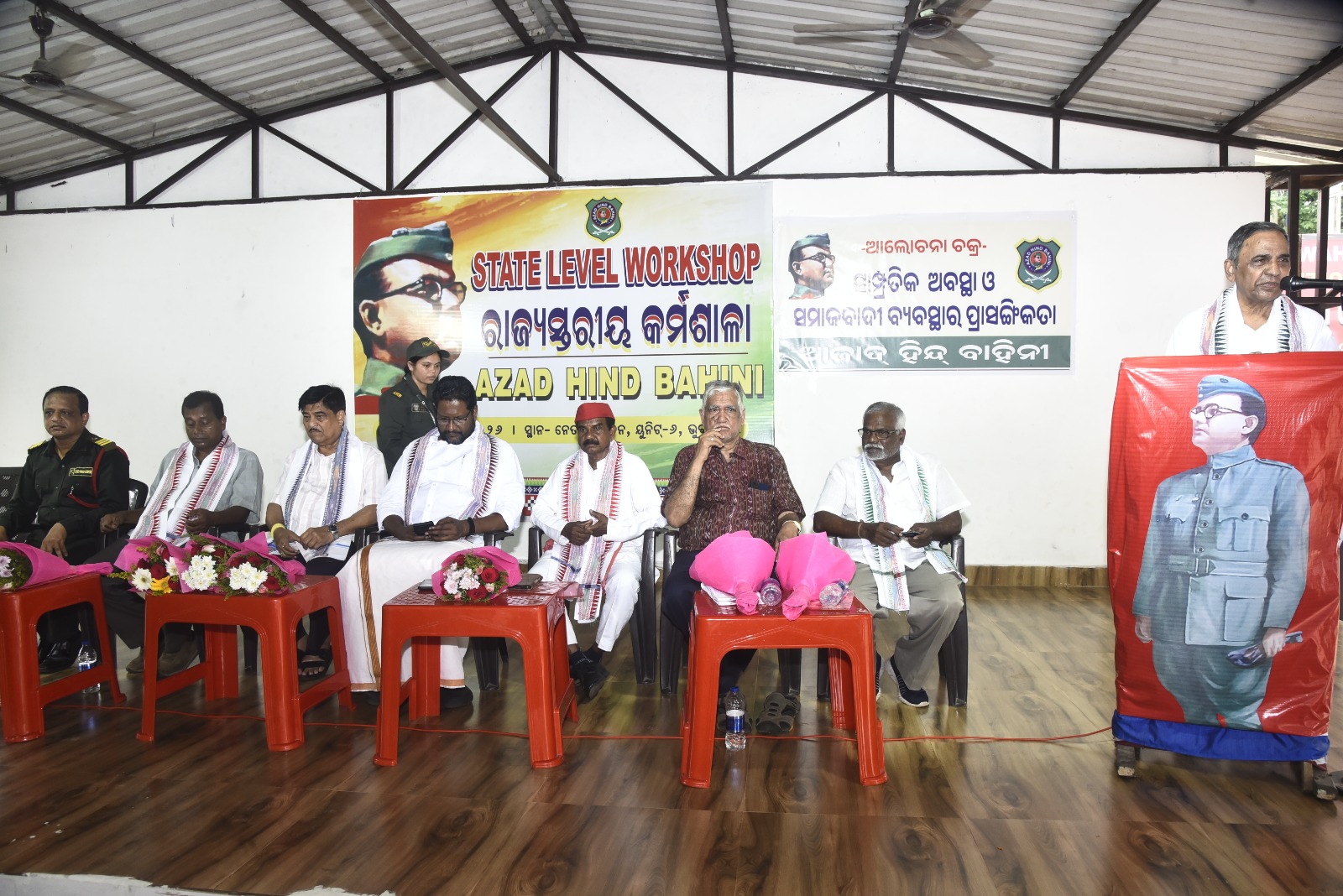 ଦେଶର ଅସମାନତା ବଢିଛି ଏବଂ ସଂଖ୍ୟାଧିକ ମେହନତି ମଣିଷ ସେମାନଙ୍କ ମୌଳିକ ଆବଶ୍ୟକତାରୁ ବଞ୍ଚିତ ହେଉଛନ୍ତି। ଏଭଳି ସ୍ଥଳେ ଦେଶ ଓ ଦେଶବାସୀଙ୍କୁ ରକ୍ଷା କରିବା ପାଇଁ ସମାଜବାଦୀ ବ୍ୟବସ୍ଥା ଆଧାରରେ ଭାରତ ବର୍ଷକୁ ଗଢିତୋଳିବା ଅପରିହାର୍ଯ୍ୟ ହୋଇପଡିଛି ବୋଲି ଏହି ଅବସରରେ ମତବ୍ୟକ୍ତ କରିଥିଲେ । ଅନ୍ୟତମ ଅତିଥି ବକ୍ତା ଭାବରେ ସମାଜବାଦୀ ପାର୍ଟିର ରାଜ୍ୟ ସଭାପତି ଶିବ ପ୍ରସାଦ ହାତୀ, ଆରଜେଡି ରାଜ୍ୟ ସାଧାରଣ ସମ୍ପାଦକ ହେମନ୍ତ କୁମାର, ସମତାକ୍ରାନ୍ତି ଦଳର ସାଧାରଣ ସମ୍ପାଦକ ପ୍ରଭାସ ସାମନ୍ତରାୟ, ଫରୱାର୍ଡ଼ ବ୍ଲକ ରାଜ୍ୟ ସଭାପତି ପୂର୍ଣ୍ଣ ଚନ୍ଦ୍ର ପାଢ଼ୀ ପ୍ରମୁଖ ଆଲୋଚନା ଚକ୍ରରେ ବ୍ୟକ୍ତବ୍ୟ ରଖି ସାମ୍ପ୍ରତିକ ଅବସ୍ଥାରେ ଦେଶ ଏକ ସଙ୍କଟ ମୟ ସ୍ଥିତିରେ ଗତି କରୁଛି। ରାଜ୍ୟରେ ଡବଲ ଇଂଜିନ ସରକାର ଆସିଵା ପରେ ସଂଖ୍ୟାଲଘୁ, ଦଳିତ ଓ ଆଦିବାସୀମାନଙ୍କ ଉପରେ ଅତ୍ୟାଚାର ବଢ଼ିବାରେ ଲାଗିଛି। ଏଭଳି ସ୍ଥଳେ ନେତାଜୀ ସୁଭାଷ ଚନ୍ଦ୍ର ବୋଷଙ୍କ ପ୍ରଦର୍ଶିତ ଭାରତୀୟତା ଆଧାରରେ ସମାଜବାଦୀ ବ୍ୟବସ୍ଥାର ପ୍ରତିଷ୍ଠା କରାଯାଇ ପାରିଲେ ଭାରତ ବର୍ଷକୁ ରକ୍ଷା କରାଯାଇ ପାରିବ ବୋଲି ମତ ବ୍ୟକ୍ତ କରିଥିଲେ। ପରେ ଅତିଥି ମାନେ ଆଜାଦ ହିନ୍ଦ ବାହିନୀ ପକ୍ଷରୁ ପ୍ରସ୍ତୁତ ଏକ ଫଟୋ ପ୍ରଦଶନୀକୁ ବୁଲି ଦେଖିଥିଲେ l ଏହି କର୍ମଶାଳା ଆସନ୍ତାକାଲି ଅପରାହ୍ନ ପର୍ଯ୍ୟନ୍ତ ଚାଲୁ ରହିବ । ସାରା ରାଜ୍ୟରୁ ଶତାଧିକ ଆଜାଦ ହିନ୍ଦ ବାହିନୀର ସିପାହୀମାନେ ଏହି କର୍ମଶାଳାରେ ଯୋଗଦାନ କରିଛନ୍ତି। ସର୍ବଶ୍ରୀ ଲଷ୍ମୀ ଦୋରା, ଦିଶା ଆଜାଦ, ରିଙ୍କି ସାହୁ, ପାୟଲ ଗୁପ୍ତା, ଈଶ୍ୱର ଖିଲ, ବିକ୍ରମ ତାଣ୍ଡି, ରାଜୁ ମାଡକାମୀ, ଖୋଜନ୍ତି କାଣ୍ଡକି ପ୍ରମୁଖ ଏହି କର୍ମଶାଳା ପରିଚାଳନା ରେ ସହଯୋଗ କରିଥିଲେ l