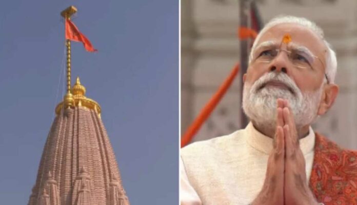 ଶାସ୍ତ୍ରର ଉକ୍ତିକୁ ମନେ ପକାଇ ଶ୍ରୀ ମୋଦୀ କହିଛନ୍ତି, ଯେଉଁମାନେ କୌଣସି କାରଣରୁ ମନ୍ଦିରକୁ ଆସିପାରନ୍ତି ନାହିଁ କିନ୍ତୁ ଏହାର ପତାକା ଆଗରେ ମୁଣ୍ଡ ନୁଆଁଇପାରନ୍ତି ସେମାନେ ମଧ୍ୟ ସମାନ ପୁଣ୍ୟ ପ୍ରାପ୍ତ କରନ୍ତି। ପ୍ରଧାନମନ୍ତ୍ରୀ କହିଛନ୍ତି, ଏହି ଧର୍ମଧ୍ୱଜ ମନ୍ଦିରର ଉଦ୍ଦେଶ୍ୟର ପ୍ରତୀକଏବଂ ଦୂରରୁ ଏହା ରାମ ଲଲ୍ଲାଙ୍କ ଜନ୍ମସ୍ଥାନର ଦର୍ଶନ ପ୍ରଦାନ କରିବ। ଏହା ଆଗାମୀ ଯୁଗ ଯୁଗ ପାଇଁ ମାନବଜାତି ଲାଗି ପ୍ରଭୁ ଶ୍ରୀ ରାମଙ୍କ ଆଜ୍ଞା ଏବଂ ପ୍ରେରଣା ବହନ କରିବ। ଏହି ଅବିସ୍ମରଣୀୟ ଏବଂ ଅନନ୍ୟ ଅବସରରେ ସେ ବିଶ୍ୱର କୋଟି କୋଟି ରାମ ଭକ୍ତଙ୍କୁ ହାର୍ଦ୍ଦିକ ଶୁଭେଚ୍ଛା ଜଣାଇଥିଲେ। ସେ ସମସ୍ତ ଭକ୍ତଙ୍କୁ ପ୍ରଣାମ କରିଥିଲେ ଏବଂ ରାମ ମନ୍ଦିର ନିର୍ମାଣରେ ଯୋଗଦାନ ଦେଇଥିବା ପ୍ରତ୍ୟେକ ଦାତାଙ୍କୁ କୃତଜ୍ଞତା ଜଣାଇଥିଲେ। ସେ ମନ୍ଦିର ନିର୍ମାଣ ସହିତ ଜଡିତ ପ୍ରତ୍ୟେକ ଶ୍ରମିକ, ପ୍ରତ୍ୟେକ କାରିଗର, ପ୍ରତ୍ୟେକ ଯୋଜନାକାରୀ ଏବଂ ପ୍ରତ୍ୟେକ ସ୍ଥପତିଙ୍କୁ ପ୍ରଣାମ କରିଥିଲେ।