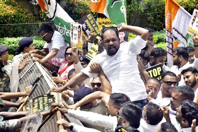 ଭୁବନେଶ୍ୱର : ଆଜି ପ୍ରଦେଶ ଯୁବ କଂଗ୍ରେସ ପକ୍ଷରୁ ରଣଜିତ ପାତ୍ରଙ୍କ ନେତୃତ୍ୱରେ ଭୁବନେଶ୍ୱର ସ୍ଥିତ ଇଡି କାର୍ଯ୍ୟାଳୟ ଘେରାଉ କରାଯାଇଥିଲା। ଶ୍ରୀ ପାତ୍ରଙ୍କ ନେତୃତ୍ୱରେ ଯୁବ କଂଗ୍ରେସର କର୍ମୀମାନେ ଏକ ର୍ୟାଲିରେ ଯାଇ ଇଡି ଅଫିସ ସମ୍ମୁଖରେ ଥିବା ପୋଲିସ ବାରିକେଡ ଭାଙ୍ଗିଥିଲେ। ପୋଲିସ ଯୁବ କଂଗ୍ରେସ କର୍ମୀଙ୍କ ମଧ୍ୟରେ ପ୍ରାୟ ଦୁଇଘଂଟା ଧରି ଧସ୍ତାଧସ୍ତି ହୋଇଥିଲା। ଏହାପରେ ଯୁବ କଂଗ୍ରେସ କର୍ମୀମାନେ ଇଡି ଅଫିସ ସମ୍ମୁଖରେ ଧାରଣା ଦେଇଥିଲେ। ଏହି ଅବସରରେ ଶ୍ରୀ ରଣଜିତ ପାତ୍ର କହିଛନ୍ତି ଯେ ଇଡି ବିଜେପିର ଏକ ଛାମୁଆ ସଂଗଠନ ଭାବେ କାର୍ଯ୍ୟକରୁଛି। ଯେଉଁ ଅଣ କଂଗ୍ରେସ ଦଳର ନେତୃତ୍ୱ ବିଜେପିର ଭ୍ରଷ୍ଟାଚାର, ଦୁର୍ନୀତି, ଦରଦାମ ବୃଦ୍ଧି, ମହିଳା ନିର୍ଯ୍ୟାତନା, ଚାଷୀ ପ୍ରସଙ୍ଗ ଓ ବେକାରୀ ସମସ୍ୟା ଏବଂ ବିପର୍ଯ୍ୟସ୍ତ ଆଇନ ଶୃଙ୍ଖଳା ପରିସ୍ଥିତି ପ୍ରସଙ୍ଗରେ ସଂସଦ ଭିତରେ ଏବଂ ବାହାରେ ଶାଣିତ ସ୍ୱର ଉତୋଳନ କରୁଛନ୍ତି ସେମାନଙ୍କ ବିରୁଦ୍ଧରେ ମୋଦି ସରକାର ଅଗଣତାନ୍ତ୍ରିକ ଭାବେ ଇଡିର କାର୍ଯ୍ୟାନୁଷ୍ଠାନ ପ୍ରୟୋଗ କରୁଛନ୍ତି। ଲୋକସଭାର ବିରୋଧି ଦଳର ନେତା ଶ୍ରୀ ରାହୁଲ ଗାନ୍ଧୀଜୀ, ପୂର୍ବତନ କଂଗ୍ରେସ ଅଧ୍ୟକ୍ଷା ଶ୍ରୀମତୀ ସୋନିଆ ଗାନ୍ଧୀଜୀ ଏବଂ କଂଗ୍ରେସ ନେତୃତ୍ୱଙ୍କ ବିରୁଦ୍ଧରେ ଇଡି ଯେଉଁ ଚାର୍ଜସିଟ ଦାଖଲ କରିଛି ଏହା ଉଦ୍ଦେଶ୍ୟ ପ୍ରଣୋଦିତ ଏବଂ ରାଜନୈତିକ ପ୍ରତିହିଂସା ପରାୟଣତାର ନଗ୍ନ ନମୂନା। ନ୍ୟାସନାଲ ହେରାଲ୍ଡ ଏବଂ ୟଙ୍ଗ ଇଣ୍ଡିଅ ମାମଲା ବିଜେପିର ଏକ ଚକ୍ରାନ୍ତମୂଳକ ପ୍ରସଙ୍ଗ।