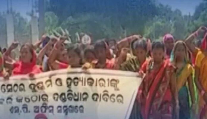 ନ୍ୟାୟ ଦାବିରେ ୧୨କିଲୋମିଟର ପଦଯାତ୍ରାରେ ଗାଁ ମହିଳା
