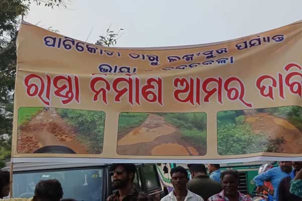 ରାସ୍ତା ନିର୍ମାଣ ଦାବିରେ ଗ୍ରାମବାସୀଙ୍କ ରାସ୍ତାରୋକ