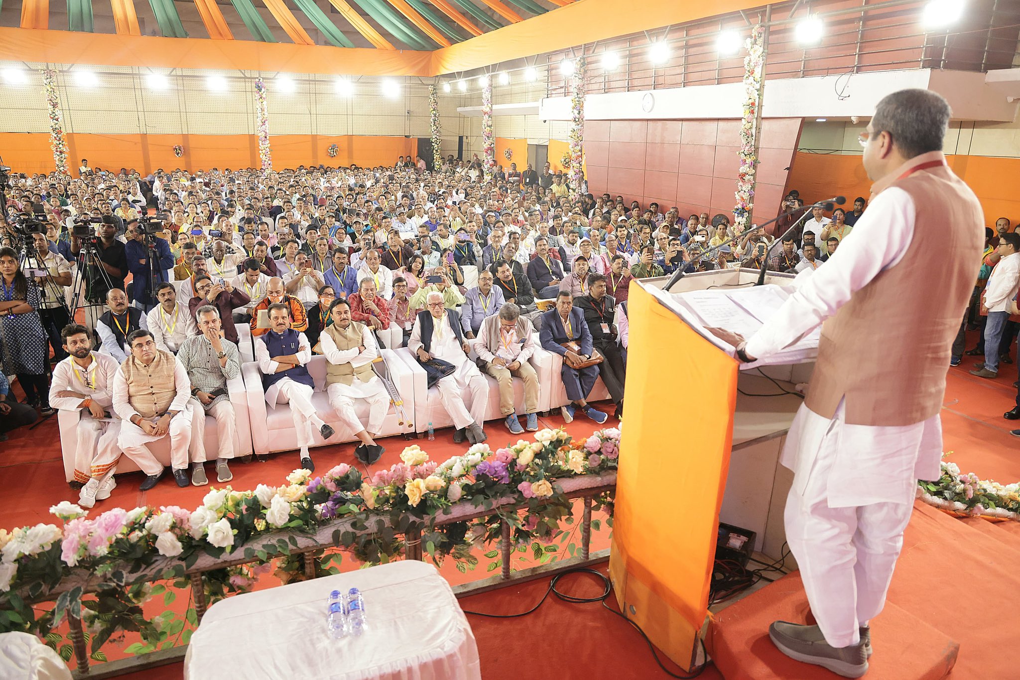 କେନ୍ଦ୍ରମନ୍ତ୍ରୀ ଅଭିଯୋଗ କରିଛନ୍ତି ଯେ, ‘ମାଁ, ମାଟି, ମାନୁଷ’ର ନାରା ଦେଉଥିବା ପଶ୍ଚିମବଙ୍ଗ ସରକାରଙ୍କ ପାଇଁ ଶିକ୍ଷା ଆଜି ପ୍ରାଥମିକତା ନୁହେଁ ବରଂ ଭୋଟ୍ ବ୍ୟାଙ୍କ ଏବଂ ତୁଷ୍ଟୀକରଣ ରାଜନୀତିରେ ସରକାର ବ୍ୟସ୍ତ ଅଛନ୍ତି । ପ୍ରଧାନମନ୍ତ୍ରୀ ନରେନ୍ଦ୍ର ମୋଦୀଙ୍କ ଦ୍ୱାରା ଅଣାଯାଇଥିବା ‘ଜାତୀୟ ଶିକ୍ଷା ନୀତି ୨୦୨୦’କୁ ଲାଗୁ ନକରି ରାଜ୍ୟ ସରକାର ପିଲାମାନଙ୍କ ଭବିଷ୍ୟତକୁ ଅନ୍ଧକାର ଆଡ଼କୁ ଠେଲି ଦେଉଛନ୍ତି । ରାଜ୍ୟର ହଜାର ହଜାର ସ୍କୁଲରେ ଶିକ୍ଷକ ନାହାନ୍ତି, ଯାହା ଶିକ୍ଷା ବ୍ୟବସ୍ଥାର ବିପର୍ଯ୍ୟୟକୁ ଦର୍ଶାଉଛି । ସମଗ୍ର ଶିକ୍ଷା ଅଭିଯାନ, ପିଏମ୍ ଶ୍ରୀ ସ୍କୁଲ ଏବଂ କେନ୍ଦ୍ରୀୟ ବିଦ୍ୟାଳୟ ପ୍ରତିଷ୍ଠା ଭଳି ଗୁରୁତ୍ୱପୂର୍ଣ୍ଣ ପ୍ରକଳ୍ପକୁ ରାଜ୍ୟରେ ଅଟକାଇ ଦିଆଯାଇଛି । ଶ୍ରୀ ପ୍ରଧାନ କହିଛନ୍ତି ଯେ, ଶିକ୍ଷାକୁ ରାଜନୀତିର ଊର୍ଦ୍ଧ୍ୱରେ ରଖିଲେ ହିଁ ପିଲାମାନଙ୍କ ଭବିଷ୍ୟତ ସୁରକ୍ଷିତ ହେବ। “ବିକଶିତ ବଙ୍ଗଳା ଏବଂ ବିକଶିତ ଭାରତ” ଗଠନର ସ୍ୱପ୍ନ କେବଳ ପ୍ରଧାନମନ୍ତ୍ରୀ ମୋଦୀଙ୍କ ଦୂରଦର୍ଶୀ ନେତୃତ୍ୱ ଏବଂ ବିଜେପି ସରକାରଙ୍କ ସଂକଳ୍ପ ଦ୍ୱାରା ହିଁ ସାକାର ହୋଇପାରିବ । ଏହି ସମ୍ମିଳନୀରେ ପଶ୍ଚିମବଙ୍ଗର ବିଭିନ୍ନ ପ୍ରାନ୍ତରୁ ଆସିଥିବା ଶିକ୍ଷକମାନଙ୍କ ସହ ଆଲୋଚନା କରି କେନ୍ଦ୍ରମନ୍ତ୍ରୀ ସେମାନଙ୍କ ସମସ୍ୟା ଶୁଣିଥିଲେ ଏବଂ ଶିକ୍ଷା କ୍ଷେତ୍ରରେ ସଂସ୍କାର ଆଣିବାକୁ ପ୍ରତିଶୃତି ଦେଇଥିଲେ । ଏହି କାର୍ଯ୍ୟକ୍ରମରେ ପଶ୍ଚିମବଙ୍ଗର ନେତା ଶ୍ରୀ ଶୁଭେନ୍ଦୁ ଅଧିକାରୀ ଏବଂ ଓଡ଼ିଶାର ଉଚ୍ଚ ଶିକ୍ଷା ମନ୍ତ୍ରୀ ଶ୍ରୀ ସୂର୍ଯ୍ୟବଂଶୀ ସୂରଜଙ୍କ ସମେତ ଅନେକ ଶିକ୍ଷକ ପ୍ରତିନିଧି ଉପସ୍ଥିତ ଥିଲେ ।