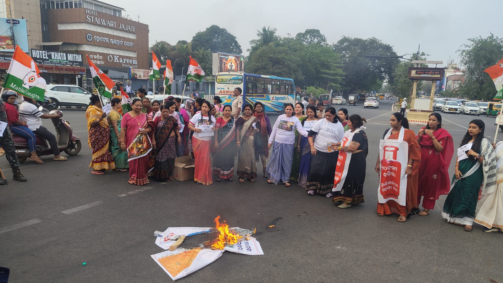 ଭୁବନେଶ୍ୱର: ଆଜି ପ୍ରଦେଶ ମହିଳା କଂଗ୍ରେସ ପକ୍ଷରୁ ରନ୍ଧନ ଗ୍ୟାସ ଦରବୃଦ୍ଧି ପ୍ରତିବାଦରେ ପ୍ରଦେଶ ମହିଳା କଂଗ୍ରେସ ସଭାନେତ୍ରୀ ଶ୍ରୀମତୀ ମିନାକ୍ଷୀ ବାହିନିପତୀଙ୍କ ନେତୃତ୍ୱରେ ମାଷ୍ଟରକ୍ୟାଂଟିନ ଛକ ଠାରେ ଏକ ବିକ୍ଷୋଭ ପ୍ରଦର୍ଶିତ ହୋଇଥିଲା । ଏହି ବିକ୍ଷୋଭରେ ଗ୍ୟାସ ଟାଙ୍କି ମୁଣ୍ଡେଇ ମହିଳା କଂଗ୍ରେସ ନେତୃବୃନ୍ଦ ରାଲି କରିଥିଲେ ଏବଂ ମାଷ୍ଟର କ୍ୟାଣ୍ଟିନ ଛକରେ ଚୁଲିରେ କାଠ ଜାଳି ରୋଷେଇ କରିଥିଲେ । ପ୍ରଧାନମନ୍ତ୍ରୀ ନରେନ୍ଦ୍ର ମୋଦୀ ଏବଂ ପେଟ୍ରୋଲିୟମ ମନ୍ତ୍ରୀ ହରଦିପ୍ ସିଂ ପୁରୀଙ୍କ କୁଶପୁତ୍ତଳିକା ଦାହ କରାଯାଇଥିଲା ।