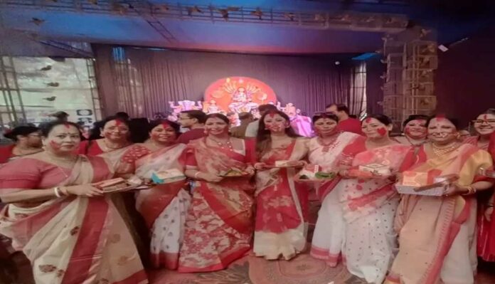 ନୂଆଦିଲ୍ଲୀ: ଗୁରୁବାର ଦିନ ସମଗ୍ର ପଶ୍ଚିମବଙ୍ଗରେ ଦୁର୍ଗା ପୂଜା ଉତ୍ସବର ସମାପନ ସହିତ ବିଜୟା ଦଶମୀ ପାଳନ କରାଯାଇଥିଲା। “ସିନ୍ଦୂର ଖେଳ” ର ପାରମ୍ପରିକ ରୀତିନୀତି ସହିତ କୋଲକାତାରେ, ଲାଲ ସୀମା ଶାଢ଼ି ପିନ୍ଧିଥିବା ମହିଳାମାନେ ବାଗବଜାର ଏବଂ କୁମାରତୁଲି ସର୍ବୋଜୋନିନ ସମେତ ଅନେକ ସାମୁହିକ ପୂଜାରେ ସିନ୍ଦୂର ଖେଳରେ ଉତ୍ସାହର ସହିତ ଅଂଶଗ୍ରହଣ କରିଥିଲେ, ରାଜ୍ୟ ମନ୍ତ୍ରୀ ଶଶି ପଞ୍ଜା ଏହି ଉତ୍ସବରେ ଯୋଗ ଦେଇଥିଲେ। ସିନ୍ଦୂର ଖେଳର ପୁରୁଣା ପ୍ରଥା ବିବାହିତ ମହିଳାମାନଙ୍କ ପରିବାରର ମଙ୍ଗଳ ପାଇଁ ପ୍ରାର୍ଥନାର ପ୍ରତୀକ।ବଙ୍ଗୋପସାଗରରେ ସୃଷ୍ଟି ହୋଇଥିବା ଲଘୁଚାପ ଯୋଗୁଁ ମଝିରେ ମଝିରେ ବର୍ଷା ଦକ୍ଷିଣ ବଙ୍ଗର କିଛି ସ୍ଥାନରେ ଉତ୍ସବକୁ ସାମାନ୍ୟ ବାଧା ଦେଇଥିଲା। ବର୍ଷା ସିନ୍ଦୂର ଖେଳ ରୀତିନୀତିରେ କିଛି ସମୟ ପାଇଁ ବାଧା ସୃଷ୍ଟି କରିଥିଲା ଏବଂ ମୂର୍ତ୍ତି ବିସର୍ଜନ ପୂର୍ବରୁ ଶେଷ ମୁହୂର୍ତ୍ତରେ ମଣ୍ଡପରେ ବସିଥିବା ଶ୍ରଦ୍ଧାଳୁମାନଙ୍କୁ ସାମାନ୍ୟ ଅସୁବିଧାର ସମ୍ମୁଖୀନ କରିଥିଲା।