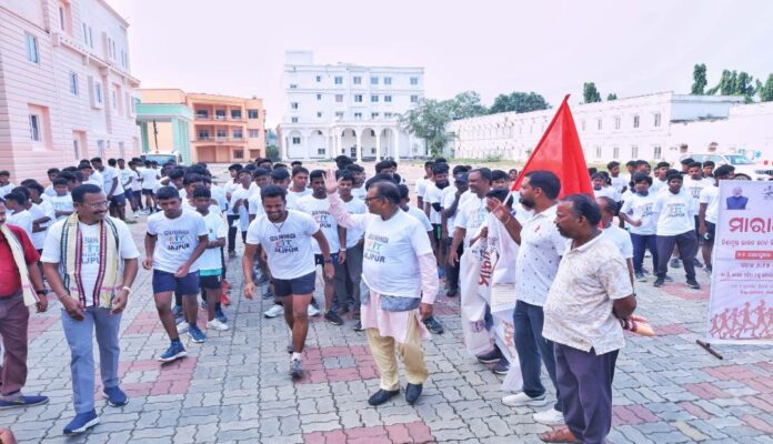 ଯାଜପୁର: ଭାରତର ଯସ୍ଵଶୀ ପ୍ରଧାନମନ୍ତ୍ରୀ ଶ୍ରୀ ନରେନ୍ଦ୍ର ମୋଦୀଙ୍କର ଜନ୍ମ ଦିବସ ତଥା ଦେଶ ବ୍ୟାପୀ ପାଳିତ ହେଉଥିବା ୧୭ ସେପ୍ଟେମ୍ବର ରୁ ୨ ଅକ୍ଟୋବର ପର୍ଯ୍ୟନ୍ତ ‘ସେବା ପକ୍ଷ – ୨୦୨୫’ ପାଳନ ଅବସରରେ ଯାଜପୁର ଜିଲ୍ଲା ପ୍ରଶାସନ ଏବଂ ଜିଲ୍ଲା କ୍ରୀଡା ଓ ଯୁବସେବା ବିଭାଗ ପକ୍ଷରୁ ଜିଲ୍ଲାସ୍ତରୀୟ ‘ ଯୁବ ମାରାଥନ୍’ ଅନୁଷ୍ଠିତ ହୋଇଯାଇଅଛି। ‘ନିଶା ମୁକ୍ତ ଭାରତ’ର ସଚେତନତାର ବାର୍ତ୍ତା ନେଇ ଆୟୋଜିତ ଏହି ଗଣଦୌଡକୁ ମାନ୍ୟବର ଲୋକସଭା ସାଂସଦ ଡ଼ ରବିନ୍ଦ୍ର ନାରାୟଣ ବେହେରା ପତାକା ଦେଖେଇ ଶୁଭାରମ୍ଭ କରିଥିଲେ। ଏହି ପରିପ୍ରେକ୍ଷୀରେ ମାନ୍ୟବର ସାଂସଦ କହିଥିଲେ ଏହା ଏକ ଗଣଦୌଡ ନୁହେଁ ଏହା ଦେଶର ଯୁବ ଶକ୍ତିମାନଙ୍କୁ ନିଶାକବଳରୁ ମୁକ୍ତି କରିବାର ଆହ୍ବାନ। ଦେଶର ଯୁବକମାନେ ନିଶାରୁ ନିଜକୁ ଦୂରେଇ ରଖିବେ, ମାନ୍ୟବର ପ୍ରଧାନମନ୍ତ୍ରୀଙ୍କ ଦେଖିଥିବା ବିକାଶଧାରା ସେତେ ଅଗ୍ରସର ହେବ। ଏହି ଜନସଚେତନତା ଗଣଦୌଡ ଏନ୍.ସି. ସ୍ଵୟଂଶାସିତ ମହାବିଦ୍ୟାଳୟ ପରିସରରୁ ଆରମ୍ଭ ହୋଇ ଯାଜପୁର ଇଣ୍ଡୋର ଷ୍ଟାଡିଅମ୍ ଠାରେ ସମାପ୍ତ ହୋଇଥିଲା। ଏହି ନମୋ ଯୁବ ମାରାଥନରେ ଅତିରିକ୍ତ ଜିଲ୍ଲାପାଳ ଶ୍ରୀ ଯୁଧିଷ୍ଠିର ନାୟକ, ଜିଲ୍ଲା କ୍ରୀଡା ଅଧିକାରୀ, ଜିଲ୍ଲା ସୂଚନା ଓ ଲୋକସମ୍ପର୍କ ଅଧିକାରୀ,ବିଦ୍ୟାଳୟ, ମହାବିଦ୍ୟାଳୟର ଛାତ୍ରଛାତ୍ରୀ, ସ୍ବେଚ୍ଛାସେବୀ, ଯୁବକ, ଯୁବତୀଙ୍କ ସମେତ ବହୁ ବୁଦ୍ଧିଜୀବୀ ଅଂଶଗ୍ରହଣ କରିଥିଲେ।